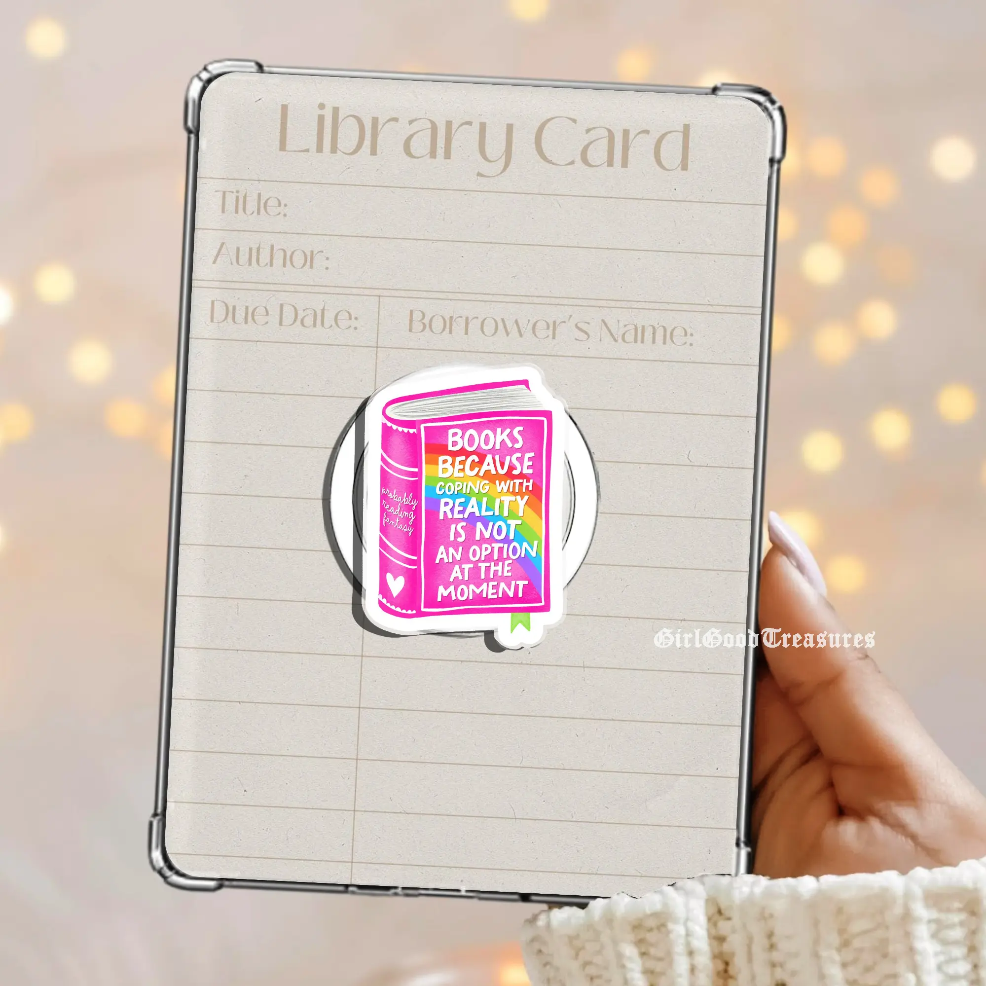 Pink Fantasy Book Not Coping With Reality Mental Health Magnetic Kindle Grip Kindle Holder Book Lover Grip Kindle Accessories Phone Holder MagSafe PopSocket Phone Grip Magnetic Pop Socket Phone Grip