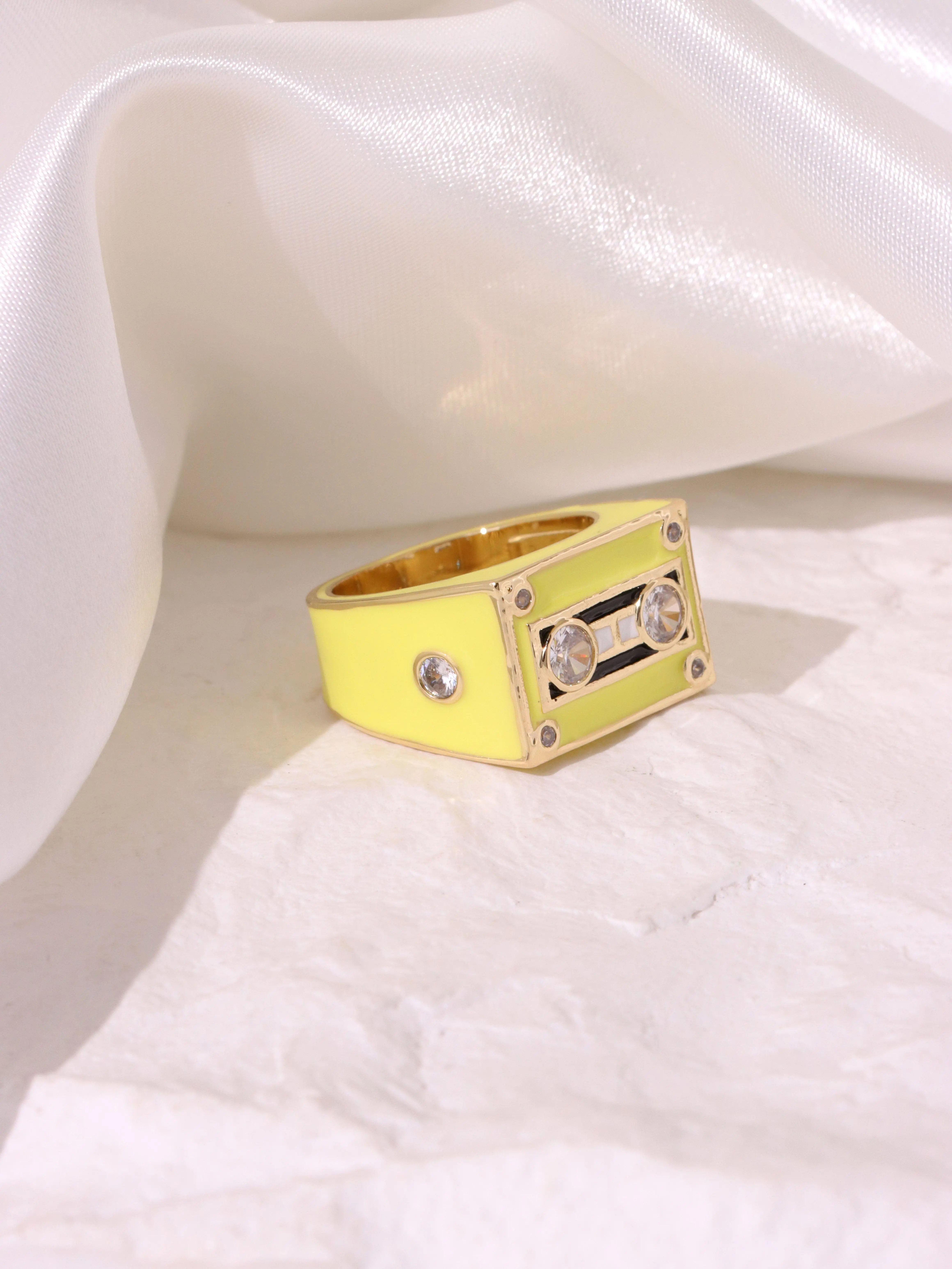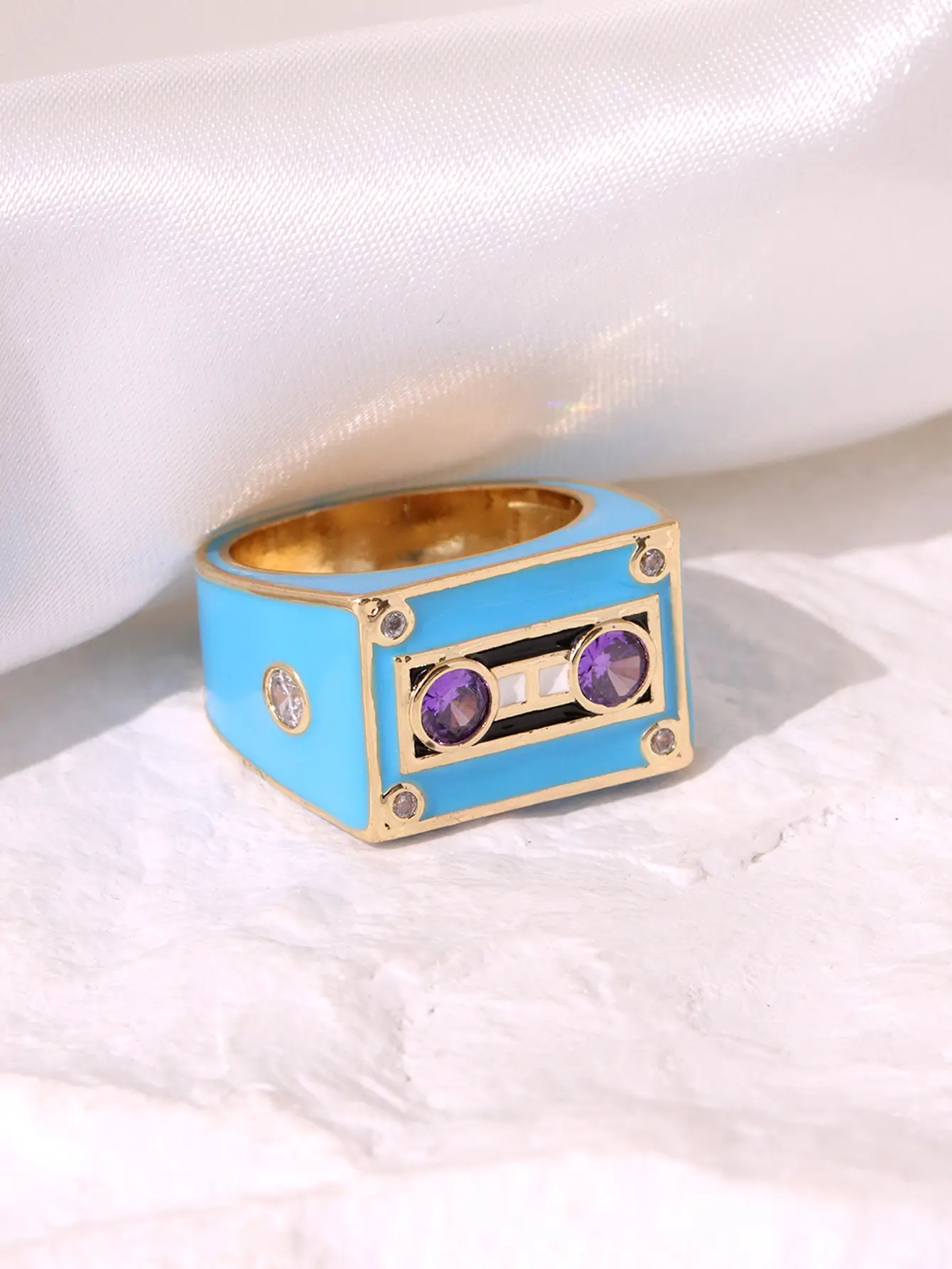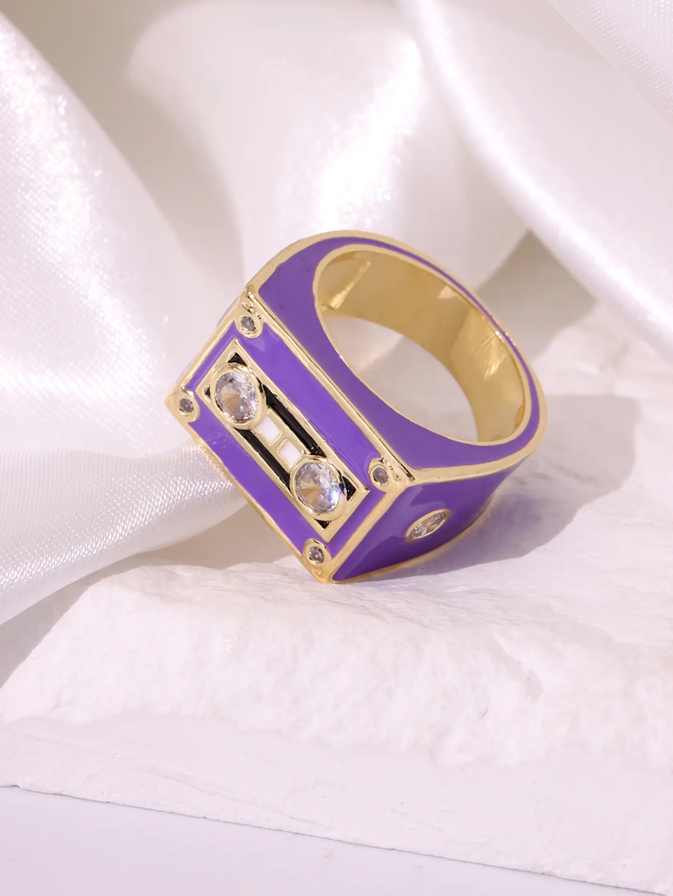 A fun and creative design with a simple, personalized, trendy, and fashionable multi colored square magnetic tape set with diamonds, suitable for daily commuting, holidays, parties, and women's rings