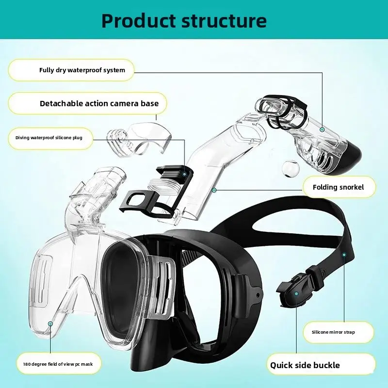 New Full Dry Anti-Fog Half-Face Mask – Designed for both snorkeling and diving. The dry-top system prevents water entry, while the anti-fog lens keeps your view crystal clear. Half-face design allows natural breathing through the mouth. Comfortable silicone skirt ensures a leak-proof seal. Perfect for underwater exploration, swimming, or freediving. Lightweight and durable for all skill levels. Great for tropical vacations or home pools.