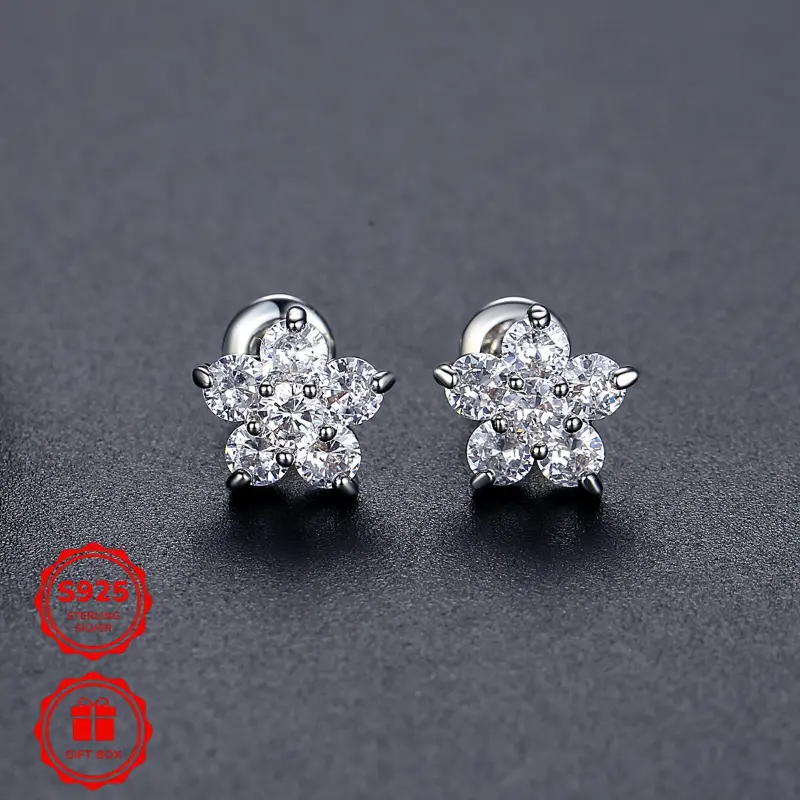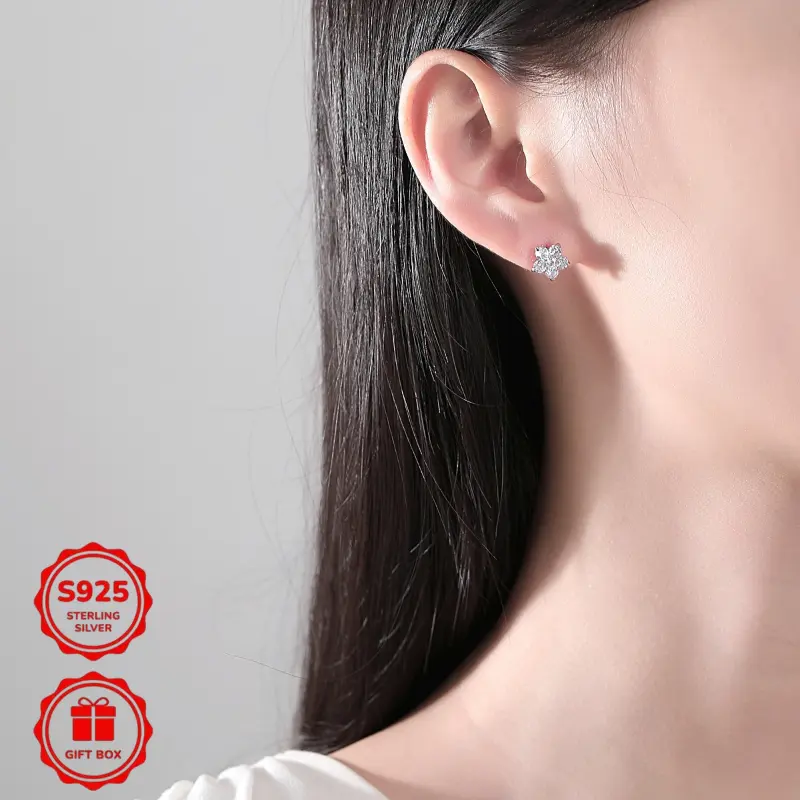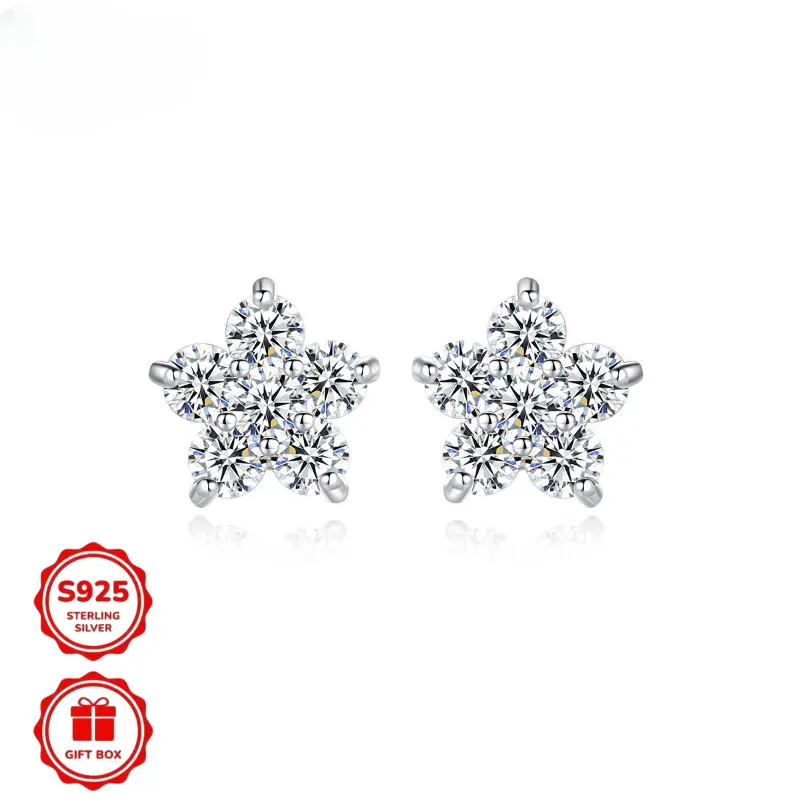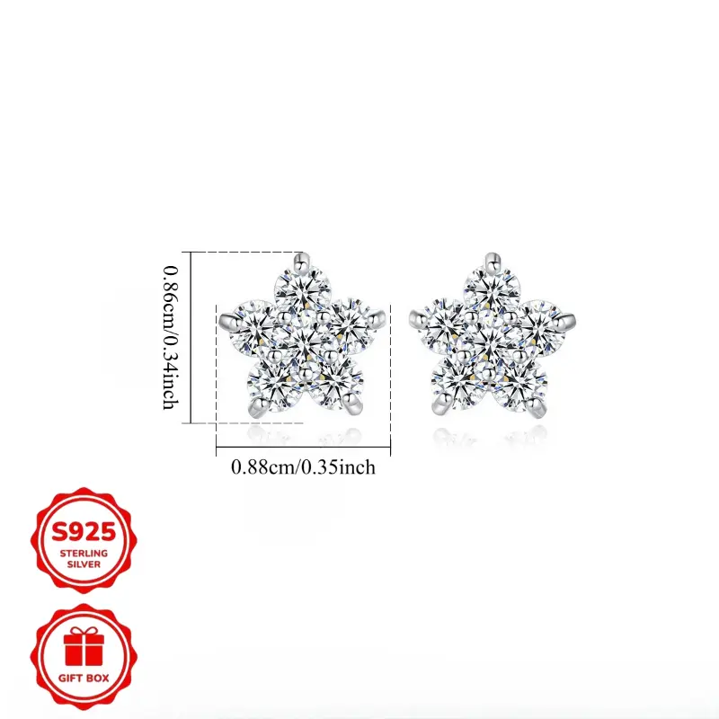 5. S925 Pure Silvery Moissanite Earrings in a Romantic Flower Design, Offering a Touch of Light Luxury And High-End Appeal. These Exquisite And Sweet Earrings Are Small And Perfect for Daily Wear Or Parties, Making Them an Ideal Gift for Women