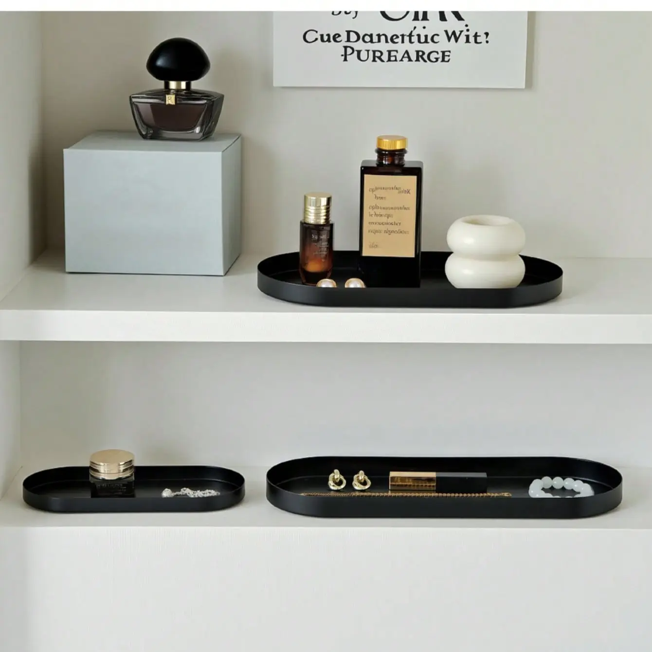 Minimalist Oval Tray, Desktop Cosmetics Organizer, Matte Bathroom Makeup Desk Storage, Jewelry Holder, Decorative Tray