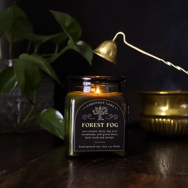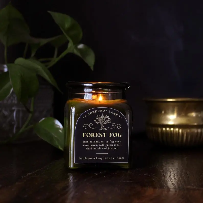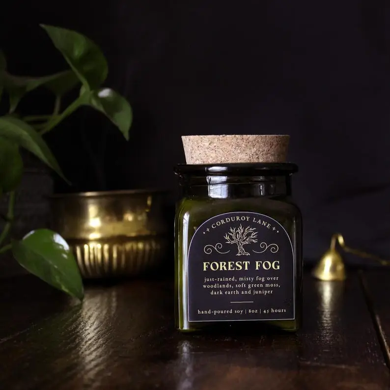 Create a cozy and moody atmosphere with our Forest Fog apothecary candle. Made from clean-burning soy and non-toxic scents in a green glass square apothecary jar with a cork lid, this handcrafted candle is perfect for lovers of all things cozy.