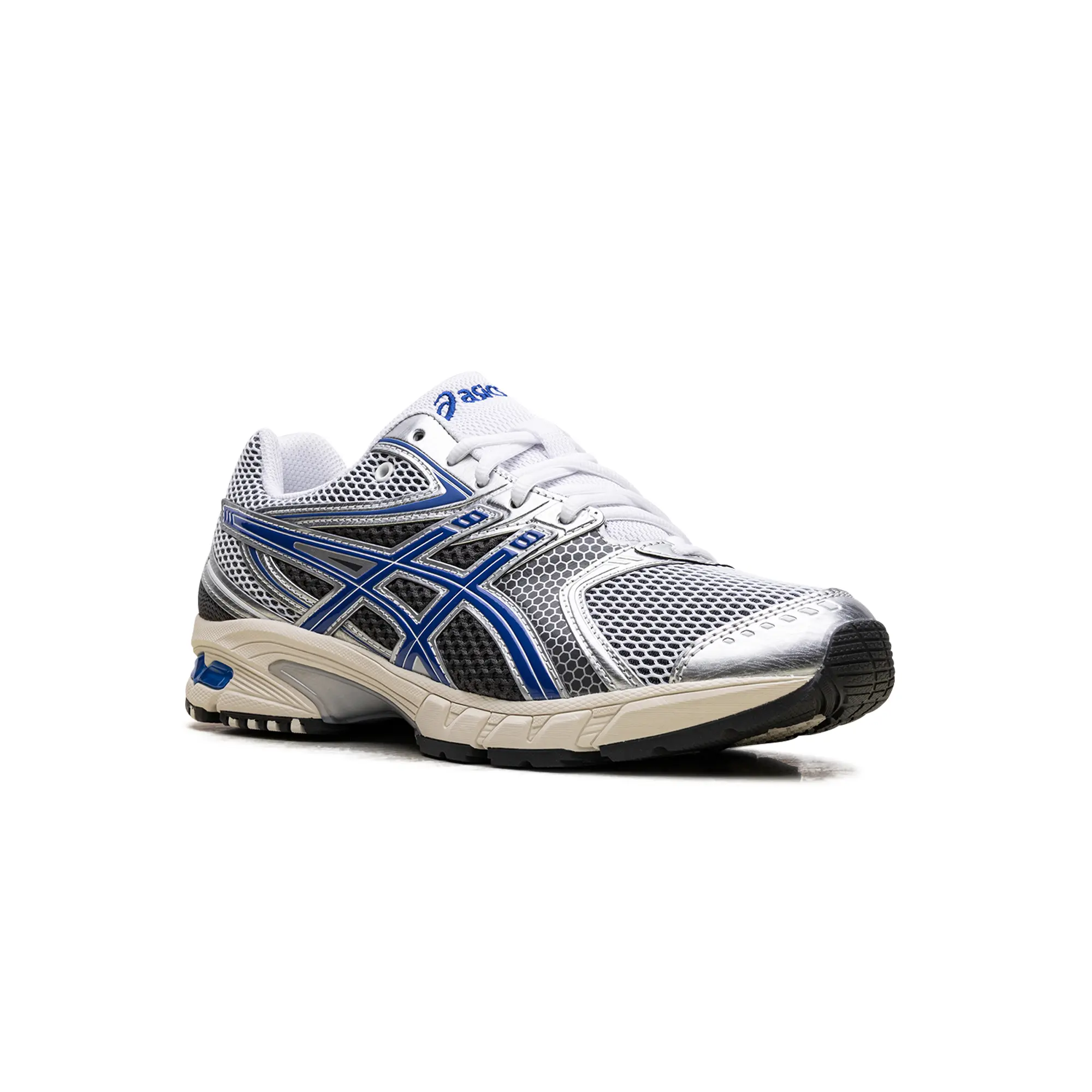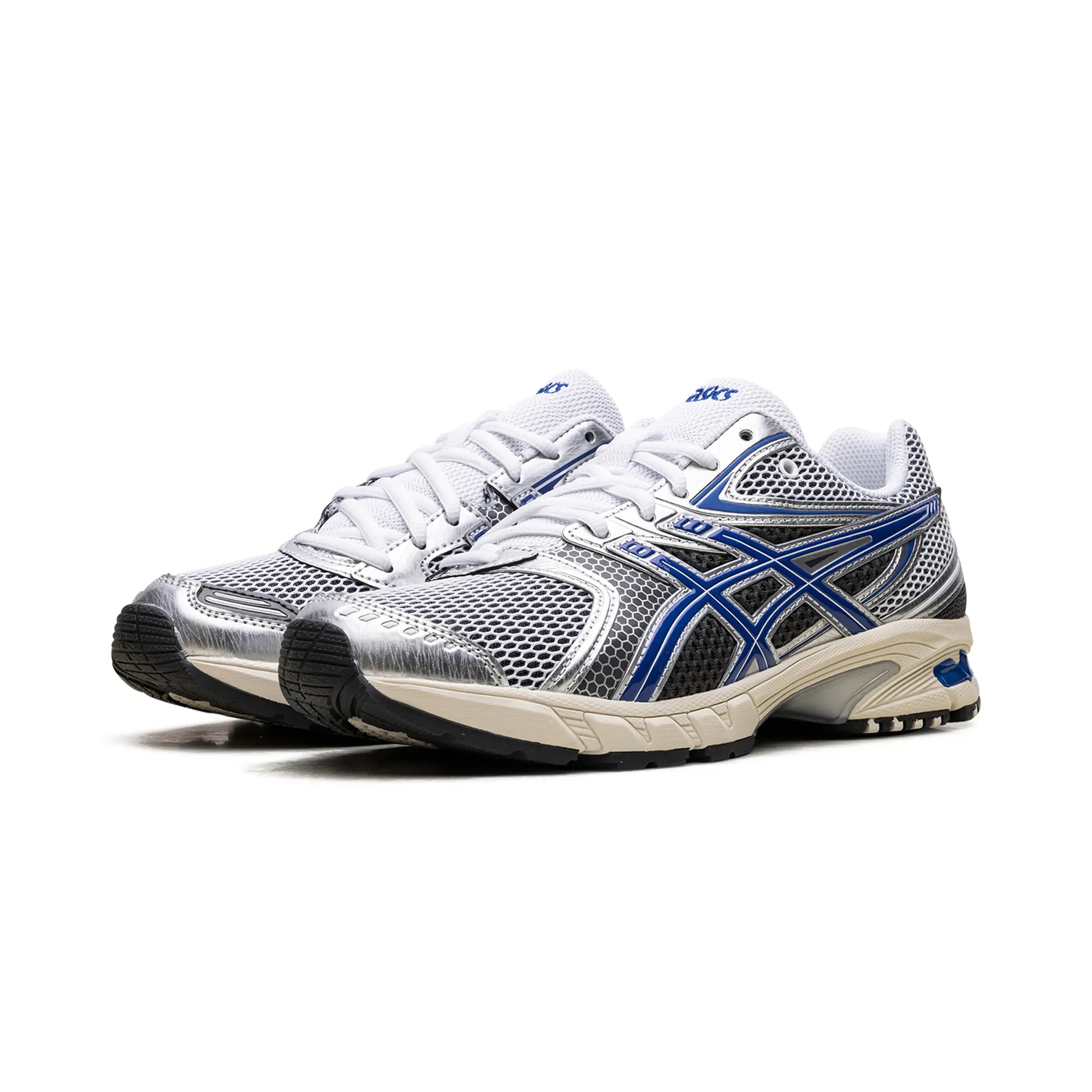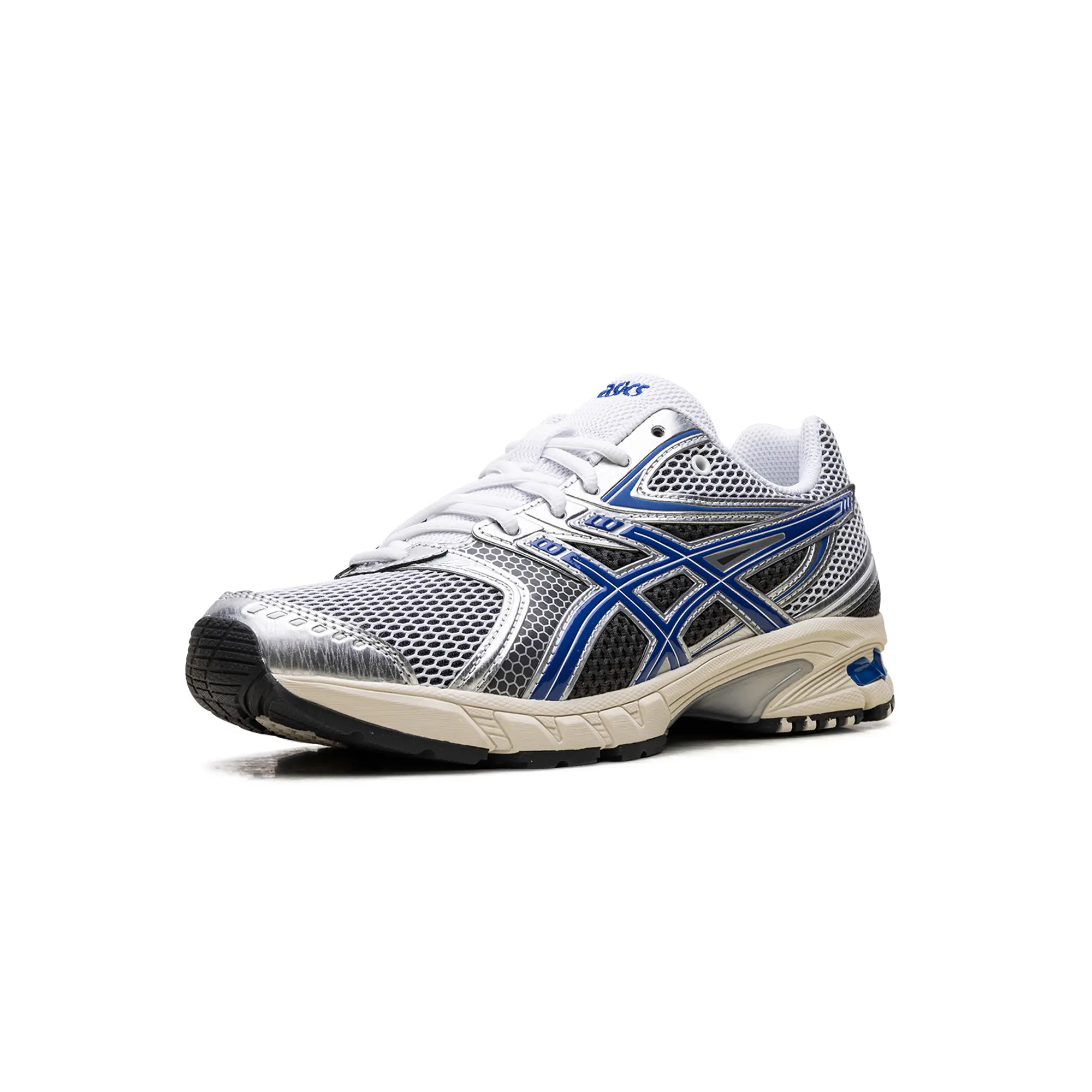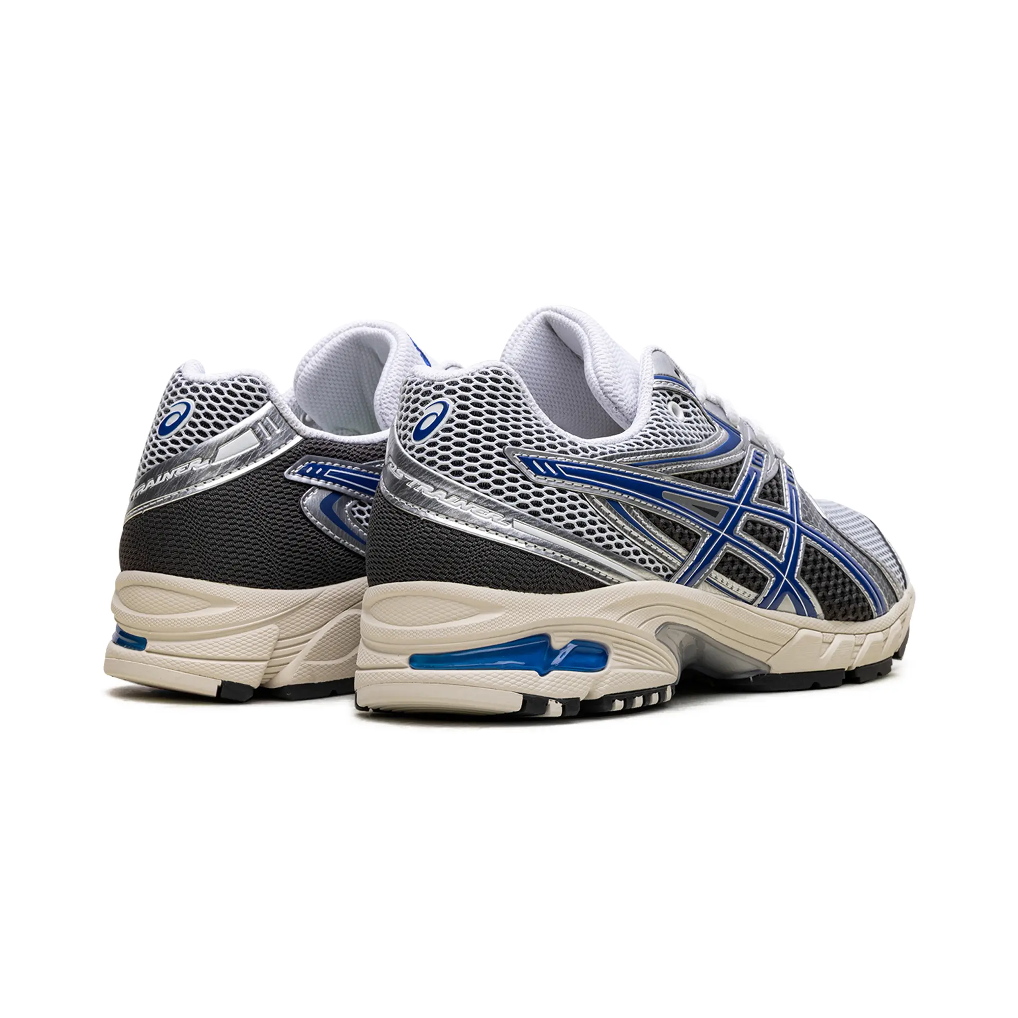 The ASICS Gel-DS Trainer 14 "White / Blue" delivers a clinical, high-status execution of the 2009 lightweight performance icon, masterfully blending "Retro-Futurist" marathon heritage with a radical, urban technicality. This iteration features a premium dual-layered mesh base in white and charcoal, providing a breathable, multi-dimensional foundation for the model’s complex profile. The design is defined by its explosive, high-contrast strike, utilizing specialized metallic silver overlays and vibrant "Asics Blue" Tiger Stripes that inject a layer of Y2K-performance luxury. Grounded by a vintage-aged "Cream" DuoSole® midsole that integrates visible vibrant blue GEL® cushioning in the heel, this release successfully pairs elite racing DNA with a sophisticated, street-ready aesthetic suitable for any high-heat tech rotation.