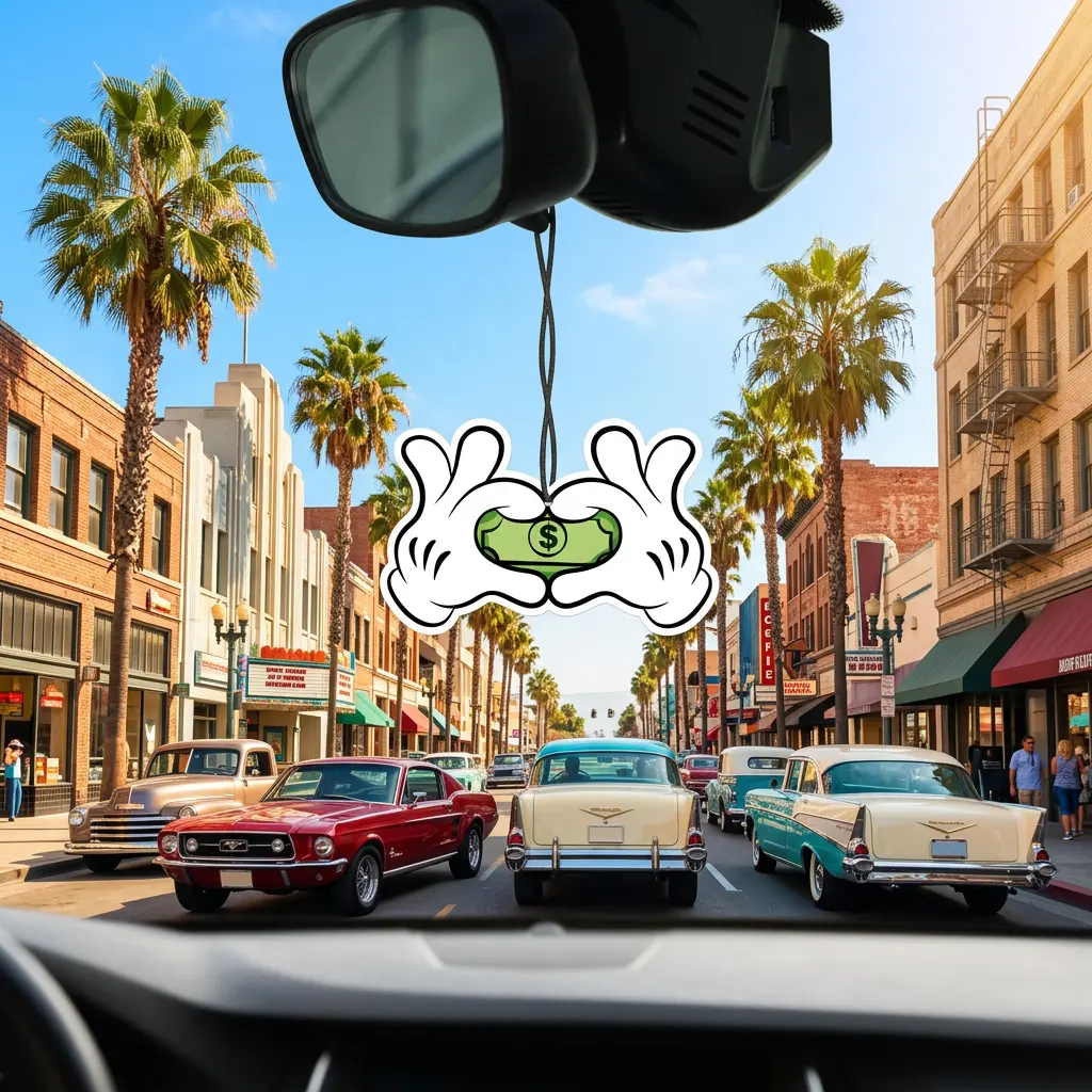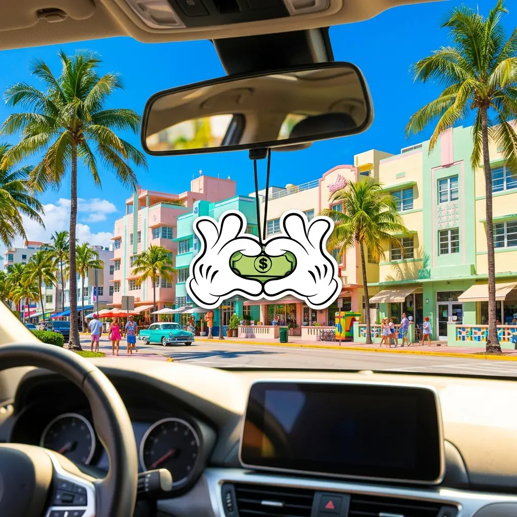 Cartoon Hand with Cash Scented Car Air Freshener | Hanging Car Decor Ornament | Cool Car Accessory for Men & Women | Long Lasting Scent
