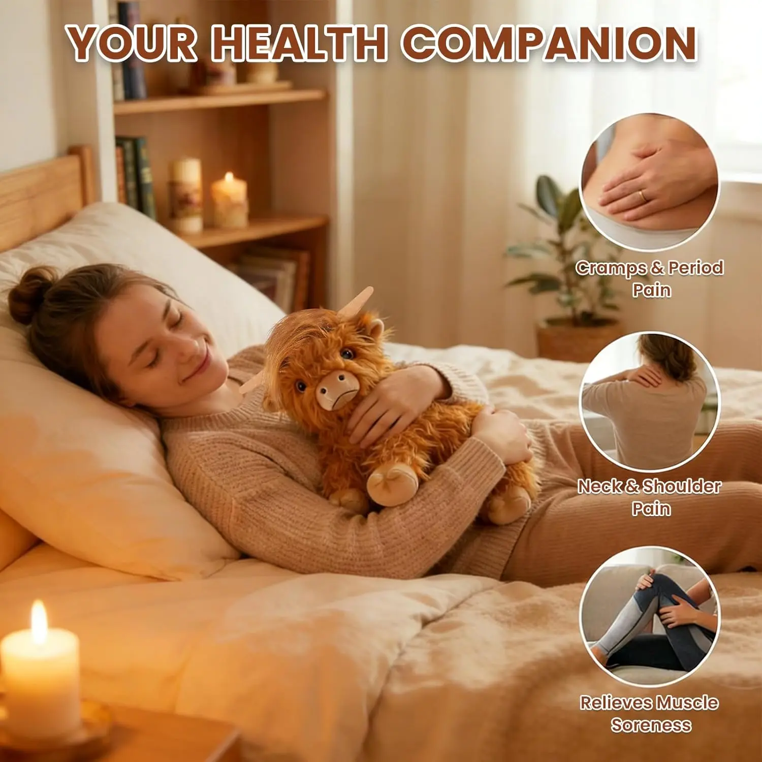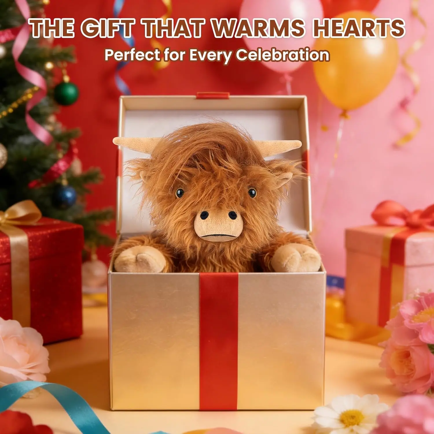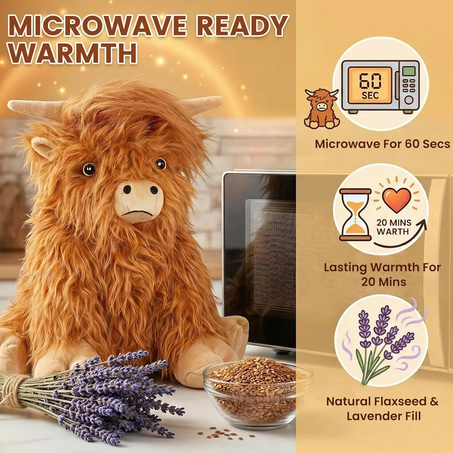 AGS Heatable Coolable Weighted Highland Cow Stuffed Animals Plushie, Microwavable Heating Pad for Period Cramps & Pain, Lavender Scented Cow Plush Toys for Stress, Highland Cow Gifts for Women