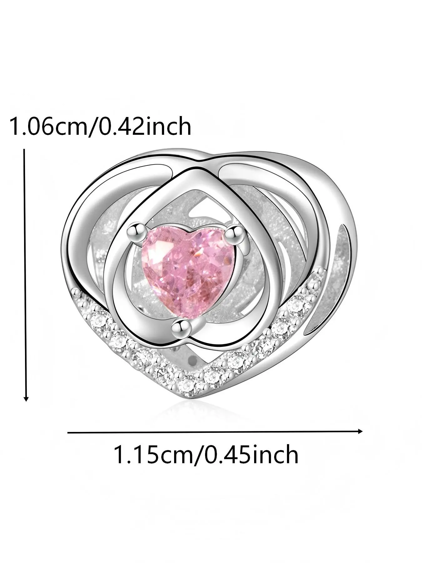 Cute Heart Charm Pendant, Copper Plated Silver Color, Zircon Embedded, Hollow Design, Perfect Valentine's Gift for Girlfriend