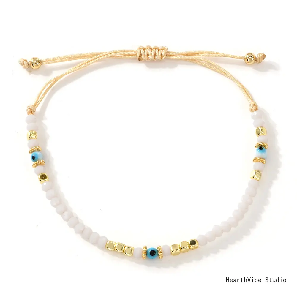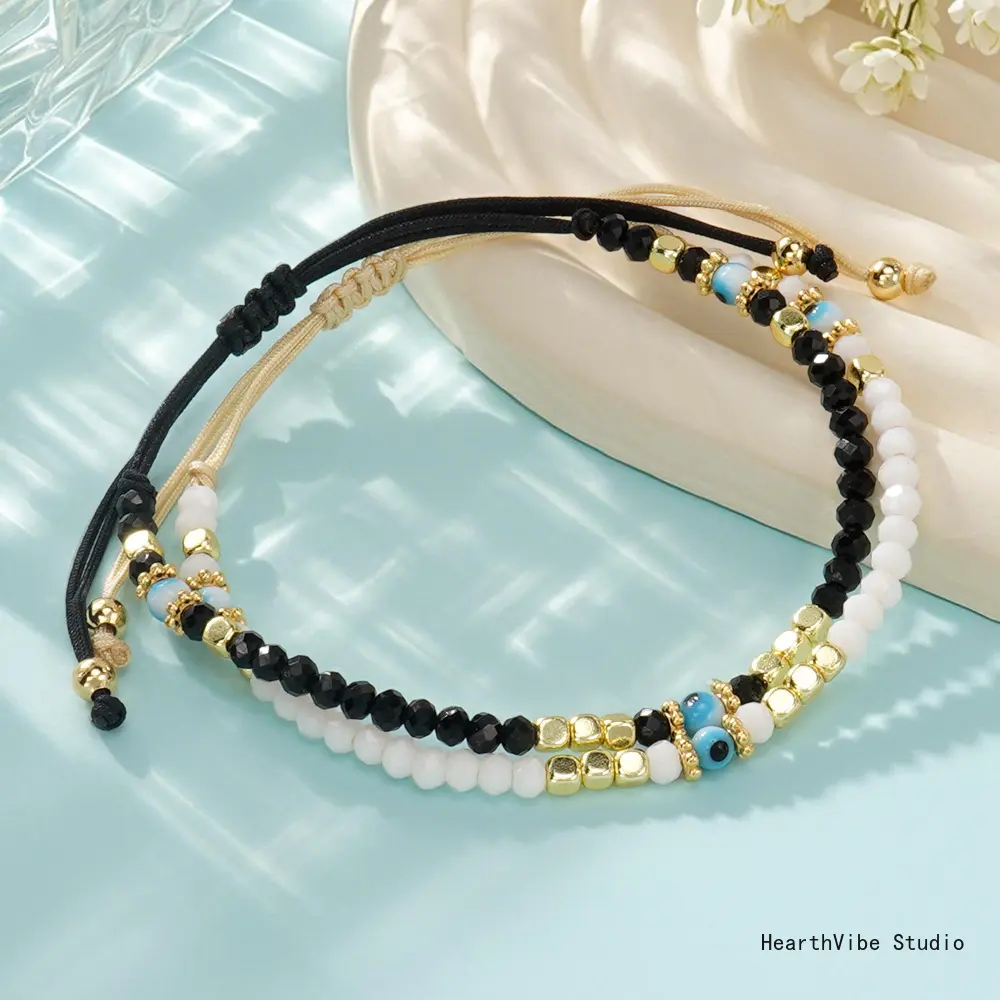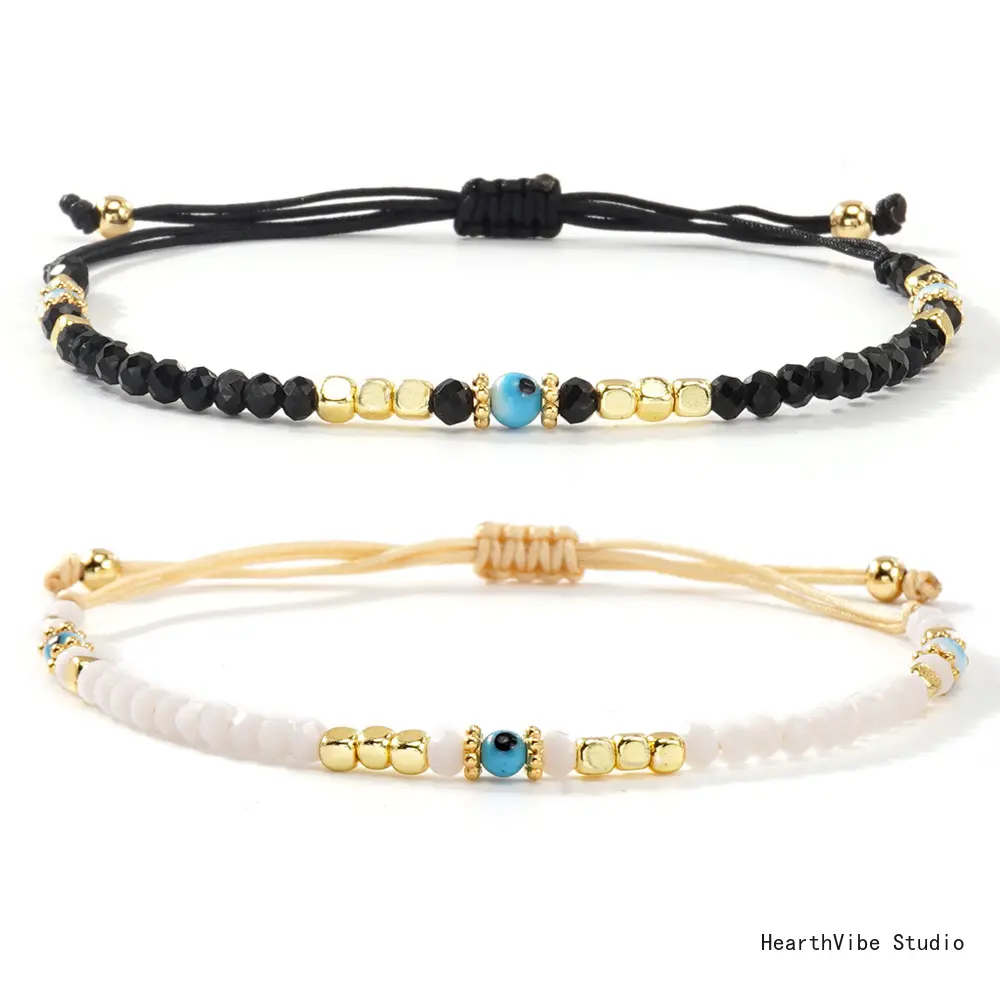 "Eye of the Demon" Couples' Bracelets: Black & White Crystal Beaded Set (2 Pieces) — Versatile, Hand-Woven Wristbands