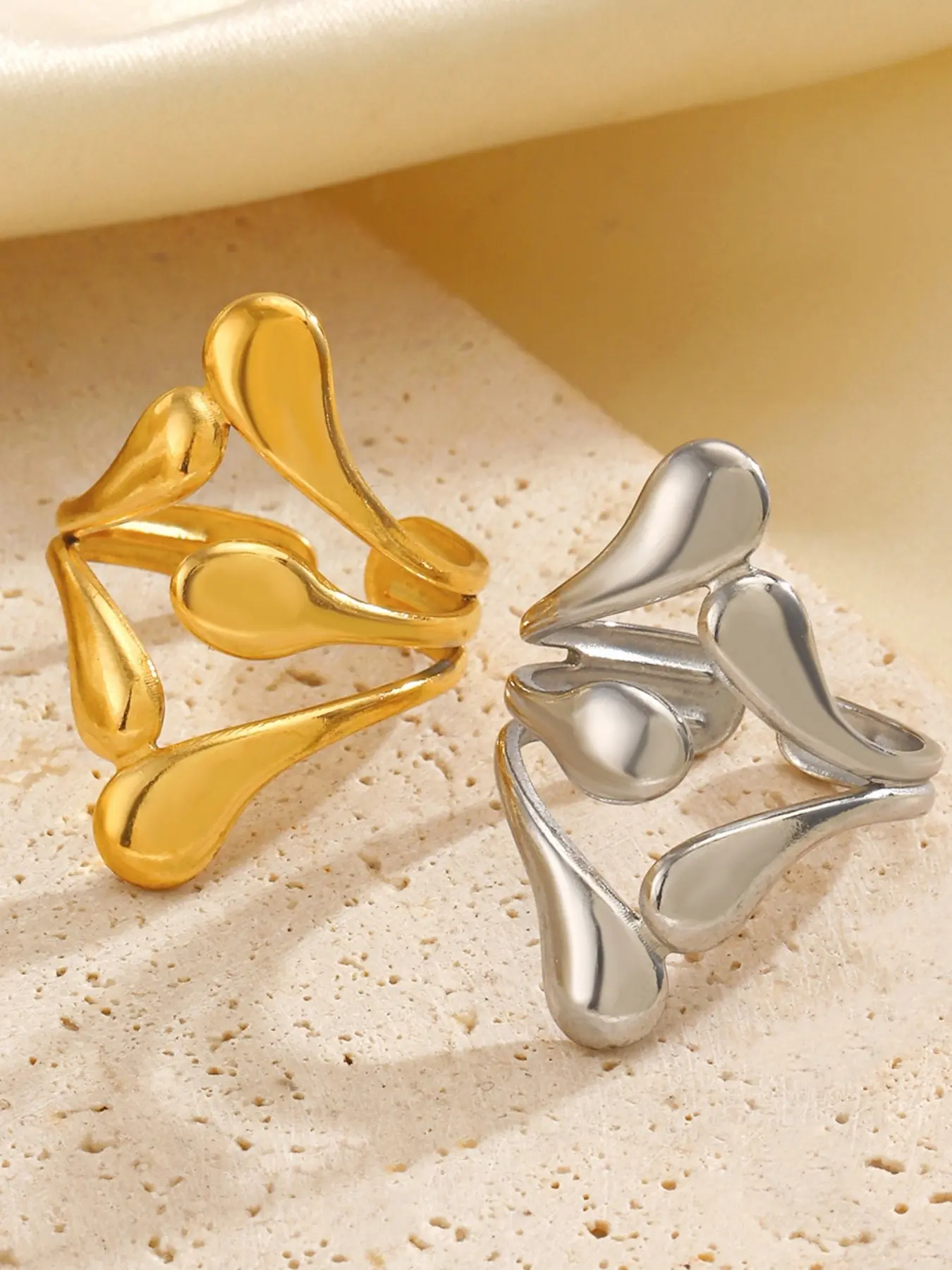 Trendy Liquid Metal Open Ring, Elegant Teardrop Design, Waterproof and Fade-Resistant, One Size Fits All, Perfect for Layering, Ideal for Fashionistas
