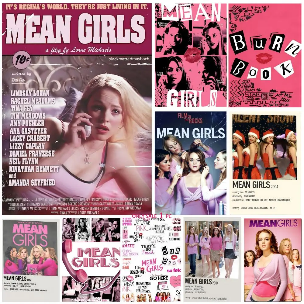 Mean Girls Movie Frameless DIY Sticky Poster Self-Adhesive Waterproof Art Sticker, Aesthetic Minimalist Wall Poster for Coffee Shop, Bar & Home Room Decor