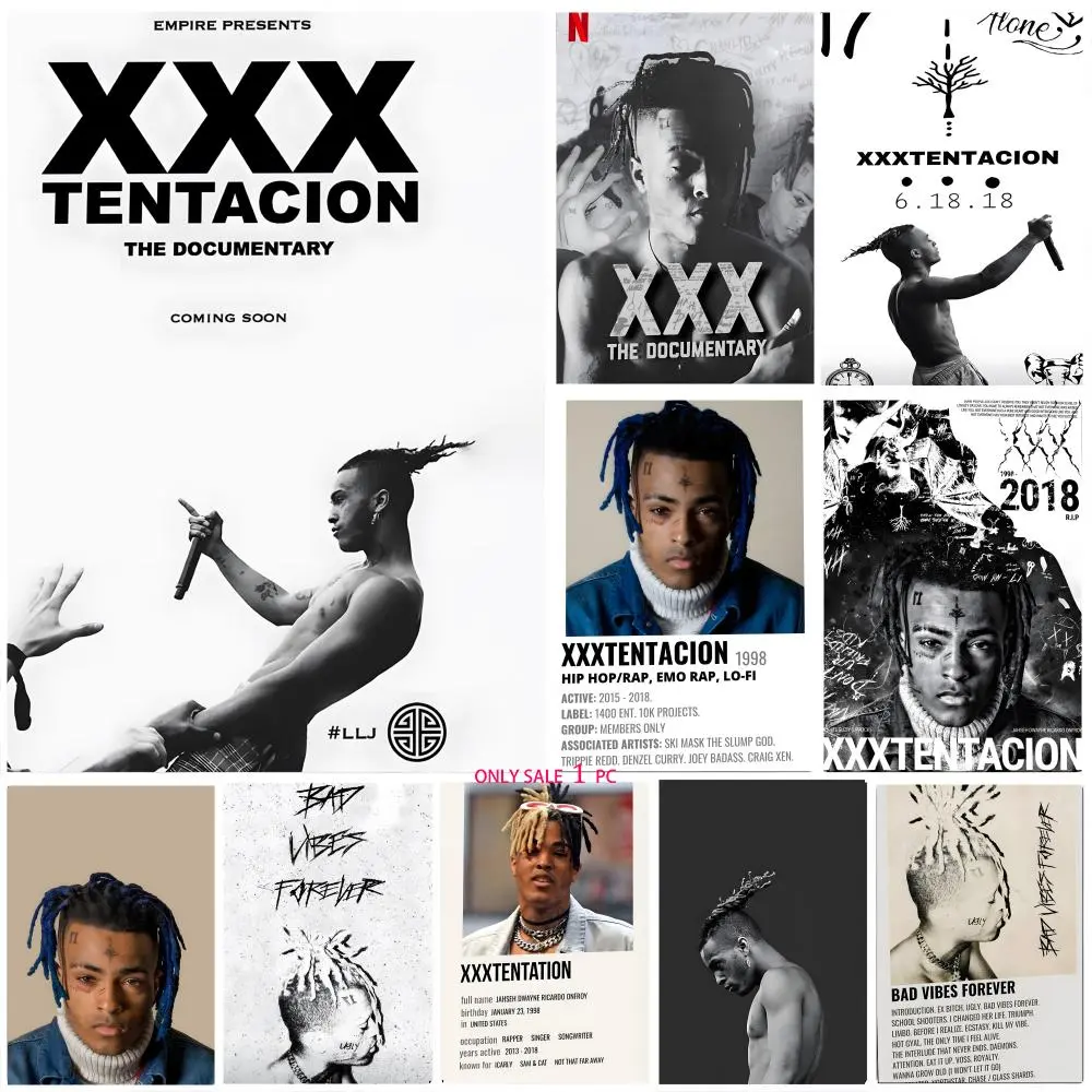 XXX-Tentacion Rock Rapper Music Albums Cover Skins Poster Self-Adhesive Waterproof Art Sticker, Aesthetic Minimalist Wall Poster for Coffee Shop, Bar & Home Room Decor