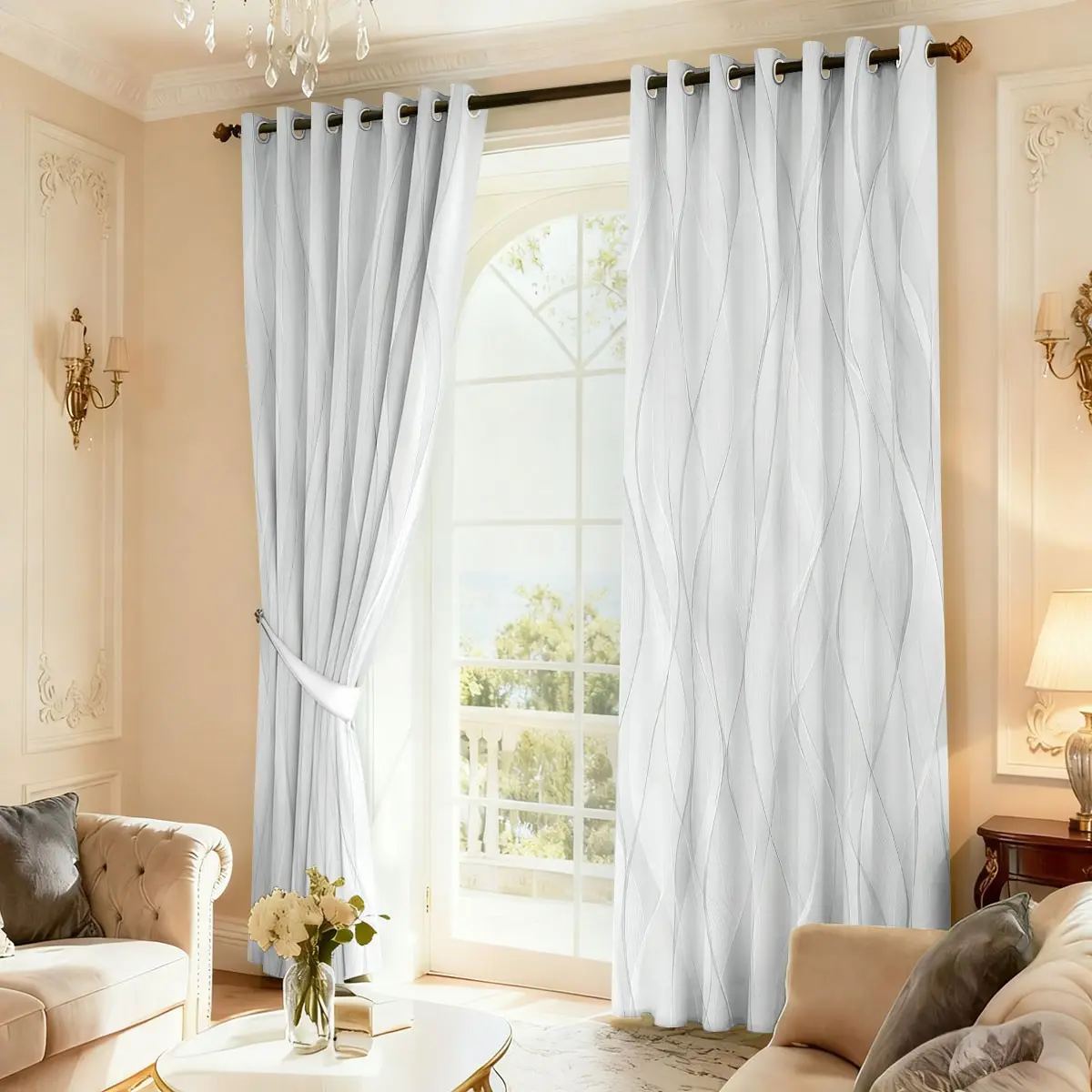 Blackout Curtains 2 panels, Room Darkening Wave White Stripe Thermal Insulated Window Curtains for Living Room Curtain,Machine‑Washable Window Curtains with Grommet