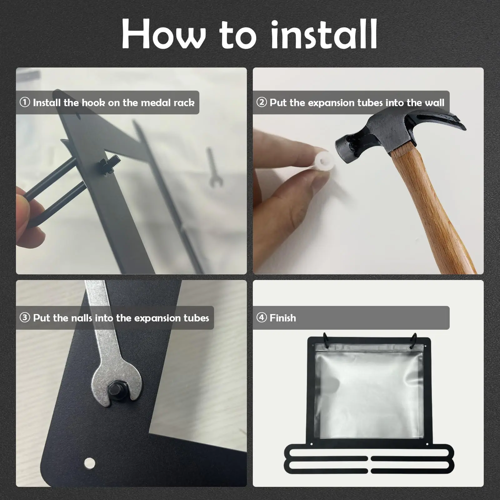 Metal Wall-Mounted Iron Medal Hook Display Stand, Square Rack with Number Plate Holder, Wall Decor, Award Hanger, Home Decoration