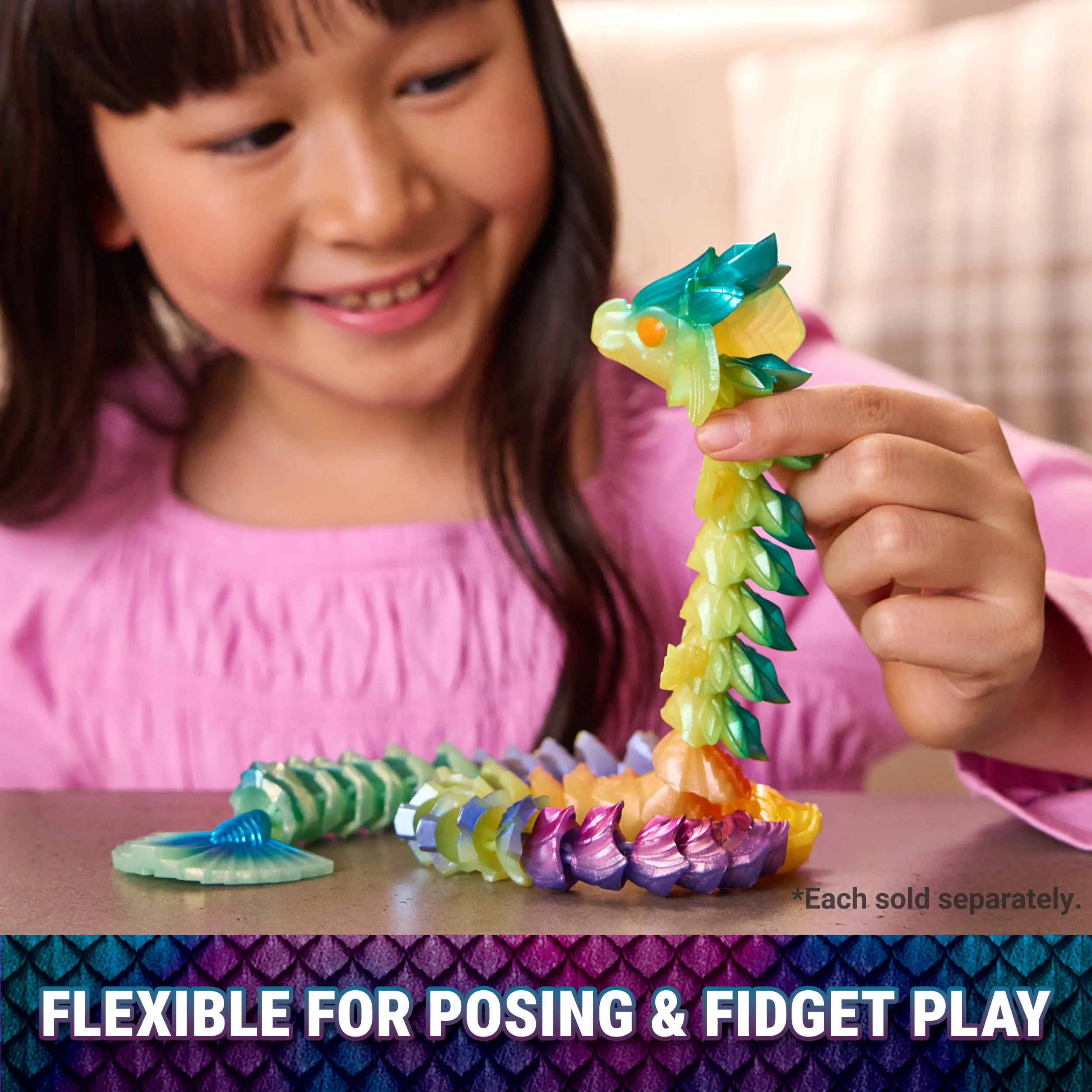 9-inch collectible articulated dragon: Inside the box, discover a new 9-inch size of CrystaLynx Dragons to collect. Each dragon toy has a fun fidget factor with rich colors & details.