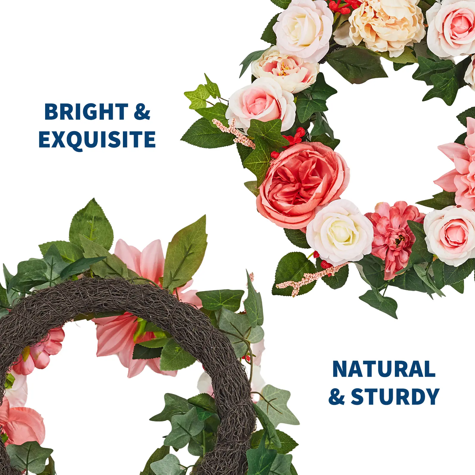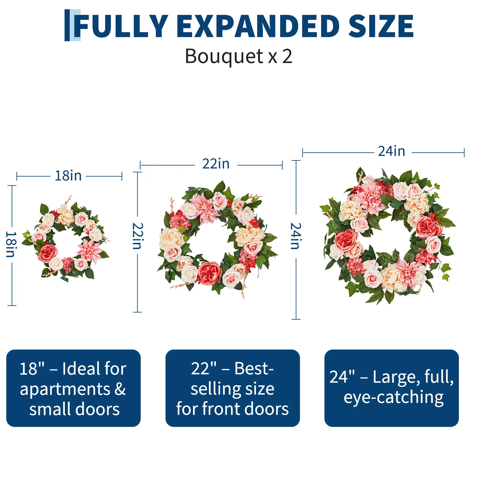 •Easy Setup & Safe Delivery: Wreath arrives securely packaged; simply unpack, gently expand, and adjust the florals to achieve a full, natural look in minutes.