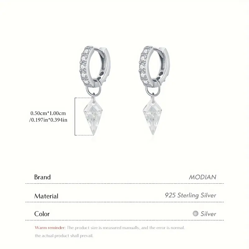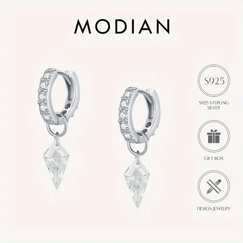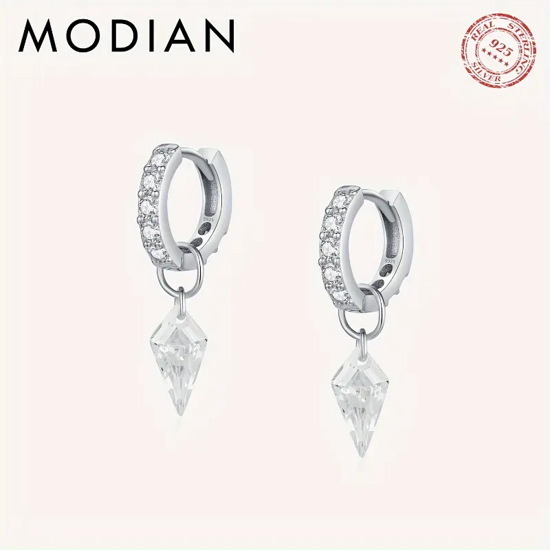 Elegant MODIAN 925 Sterling Silvery Hoop Earrings with Sparkling Cubic Zirconia Charm - Hypoallergenic, Perfect for Parties & Vacations