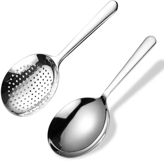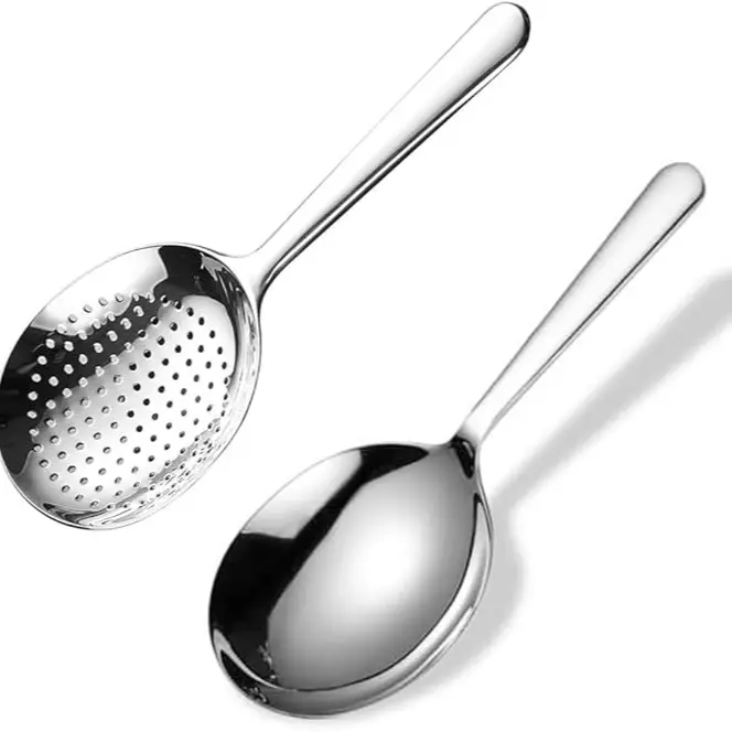 Skimmer & Ladle Set, Korean Style Serving Ladles, 1x Serving Ladle Spoon, 1 x Skimmer with hole, Stainler, Stainless Steel, 7Inch Length, Silver, Korean Mukbang, Ramen