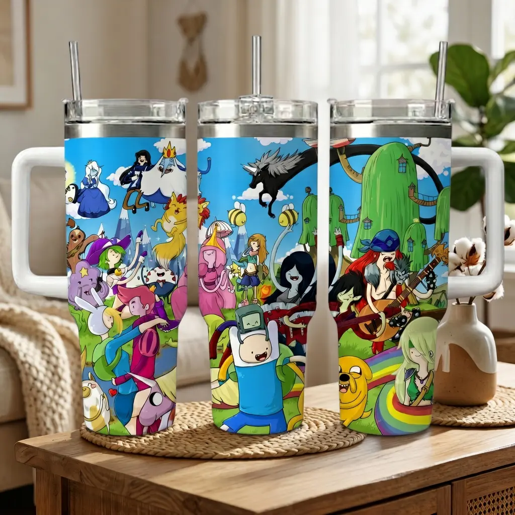 Adventure Time Tumbler 20oz/40oz, F&J Insulated Stainless Steel Cup with Handle & Straw, Cute Cartoon Fan TumblerAdventure Time Tumbler 20oz/40oz, F&J Insulated Stainless Steel Cup with Handle & Straw, Cute Cartoon Fan Tumbler