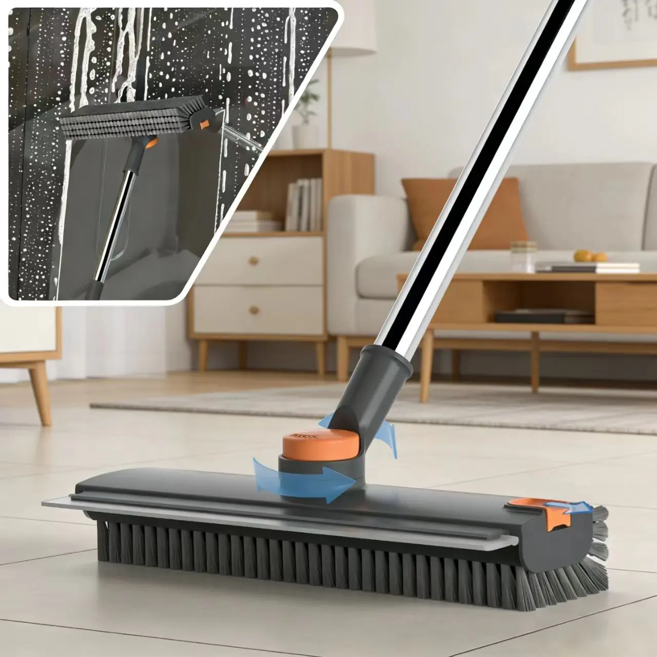 Designed for precision deep cleaning! The 3-sided stiff-bristle head supports a 90° fixed angle and 360° full rotation, easily reaching baseboards, tile grout, corners, and tight gaps. Ideal for thorough scrubbing on floors and hard-to-reach surfaces.
