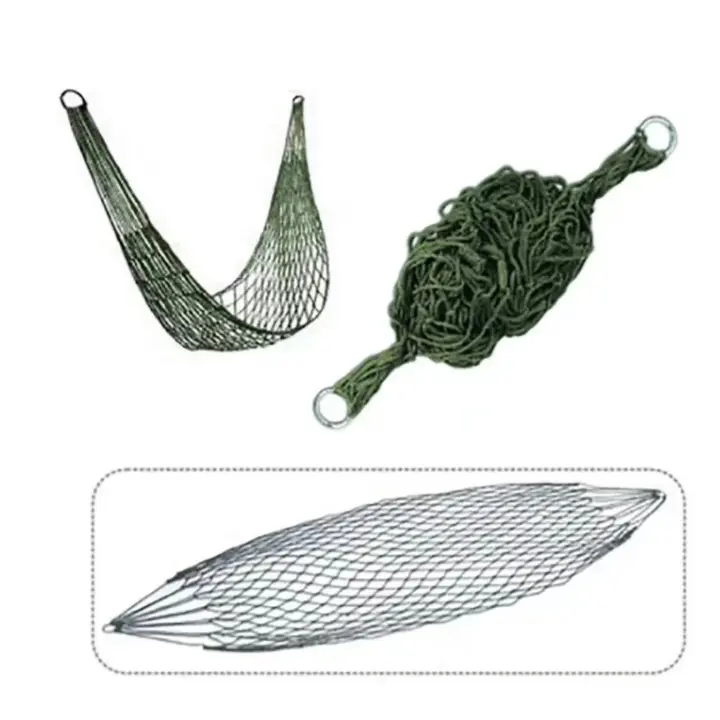 Nylon Rope Hammock – Made from high-quality nylon for a cool, breathable resting surface. Lightweight and easy to carry, perfect for camping, beach, or backyard use. Durable construction resists sun damage and wear, ensuring long-lasting performance. The breathable mesh design keeps you comfortable on hot days while the strong ropes provide stable support. Folds into a small carrying bag for effortless portability. Enjoy relaxing naps or reading outdoors without overheating or worrying about UV degradation. Ideal for travelers and outdoor lovers. Relax anywhere.