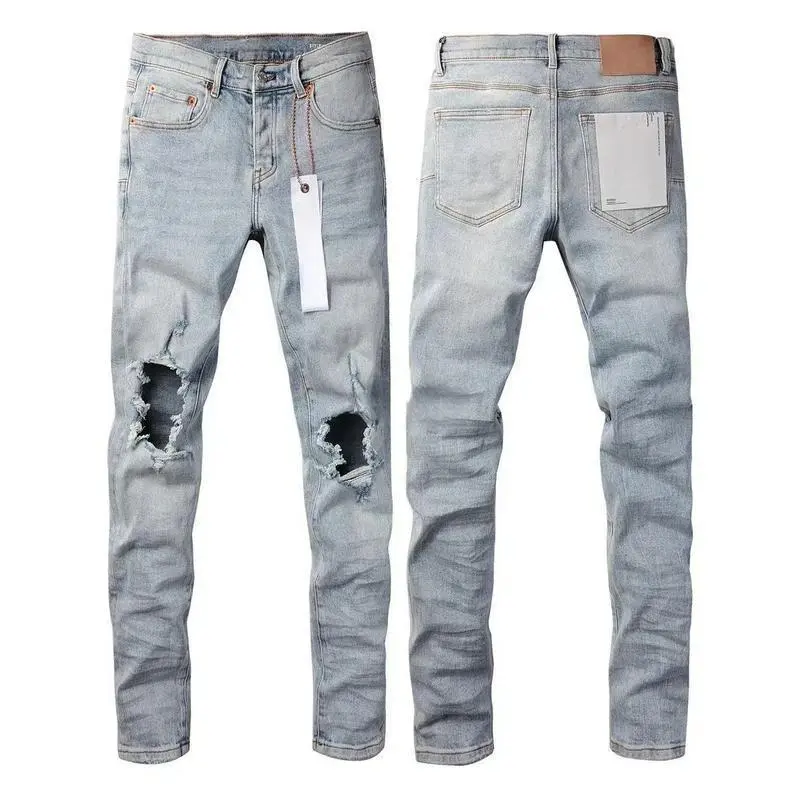 New Fashion  jeans man with distressed hole patches Fashion Repair Low Rise Skinny Denim pants 28-40 size Black Casual Fabric Menswear Trouser Streetwear Beige Pocket Plain