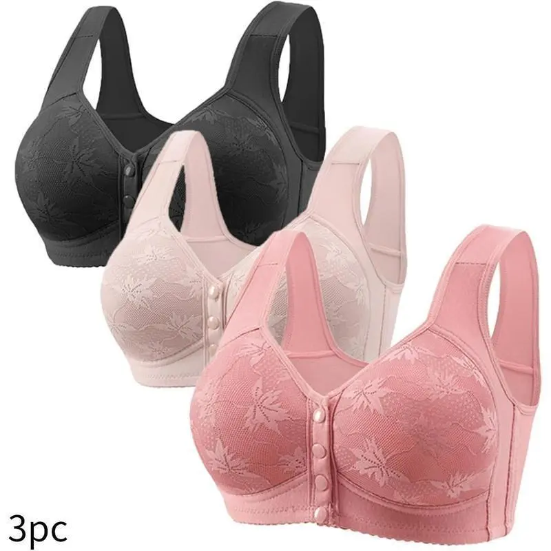3 Pack Daisy Bras for Women Plus Size Bras Front Closure Bras No Underwire Full Coverage Bralettes Everyday Wear Bras