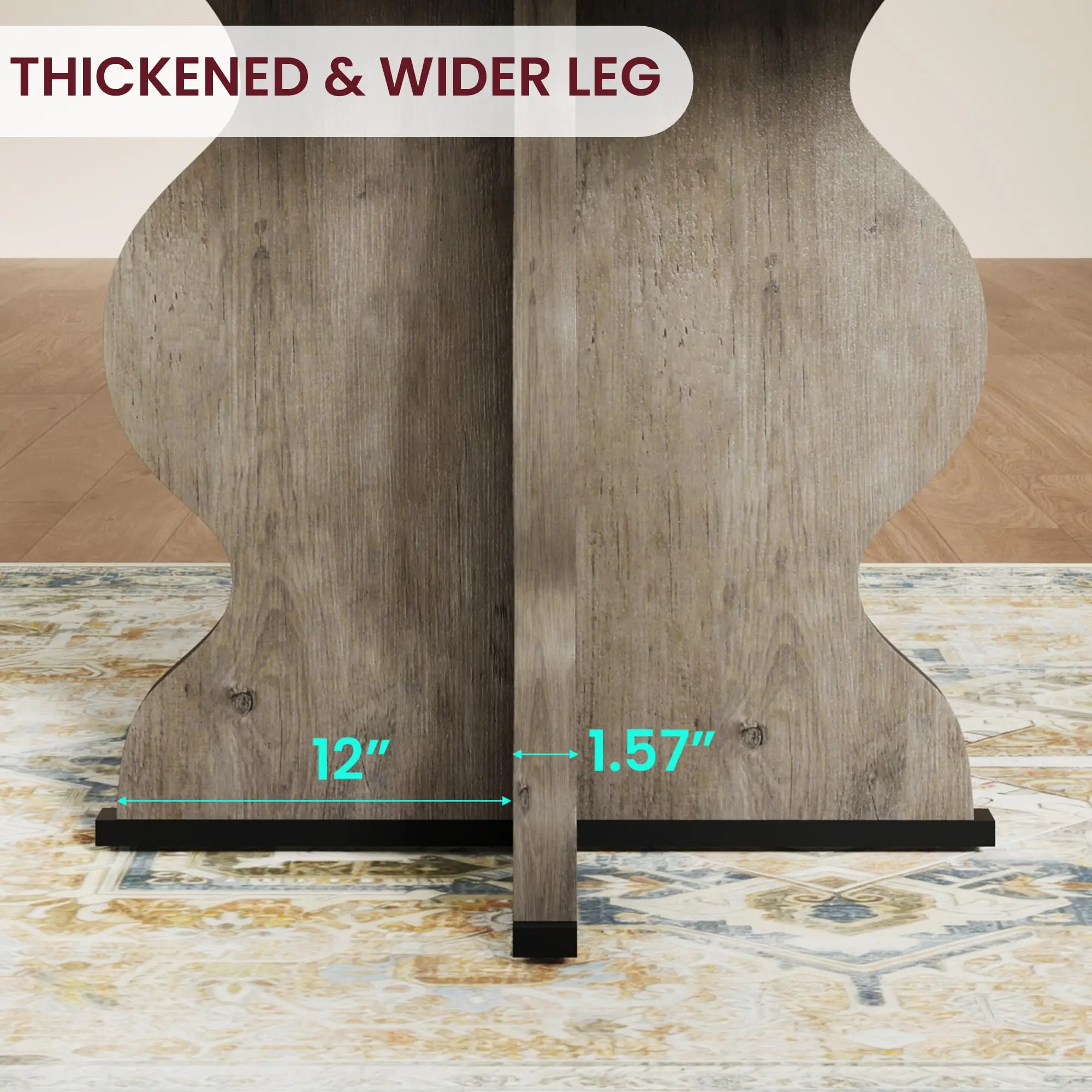·Farmhouse Aesthetic: With its oval silhouette, wide legs, and beautiful wood grain finish, this table brings rustic charm and warmth to your dining room, seamlessly blending with both modern and traditional decors.