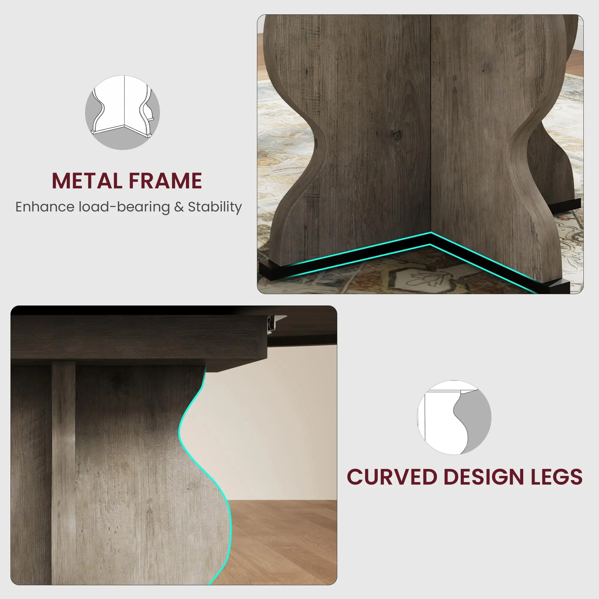 ·Sturdy & Durable Construction: Crafted with a robust metal support frame and a thick wood tabletop, this table ensures long-lasting stability and support for your family gatherings and dinner parties.