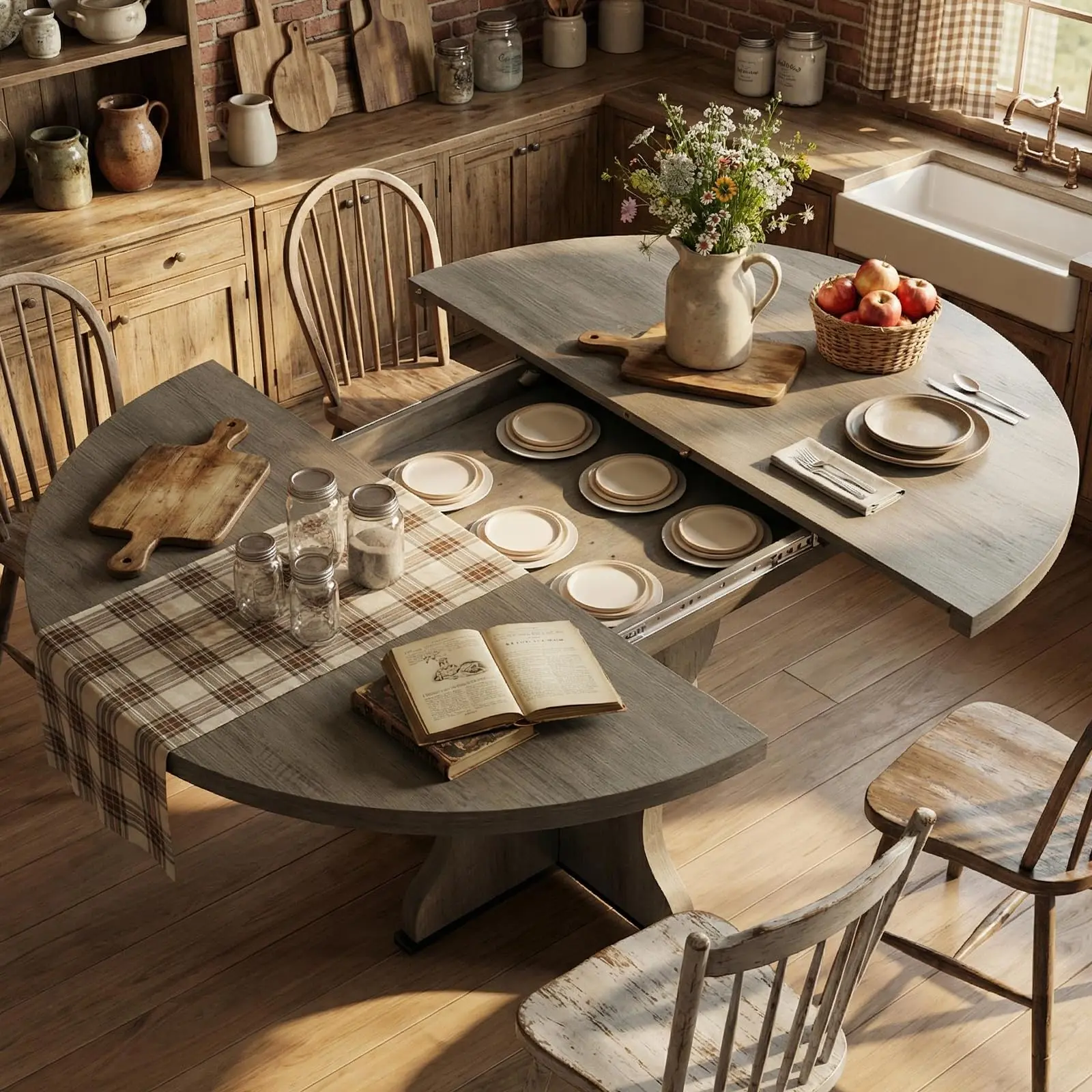 Upgrade your dining area with this space-saving, extendable oval dining table—a perfect blend of farmhouse charm, sturdy design, and modern functionality for your kitchen, apartment, or dining room.