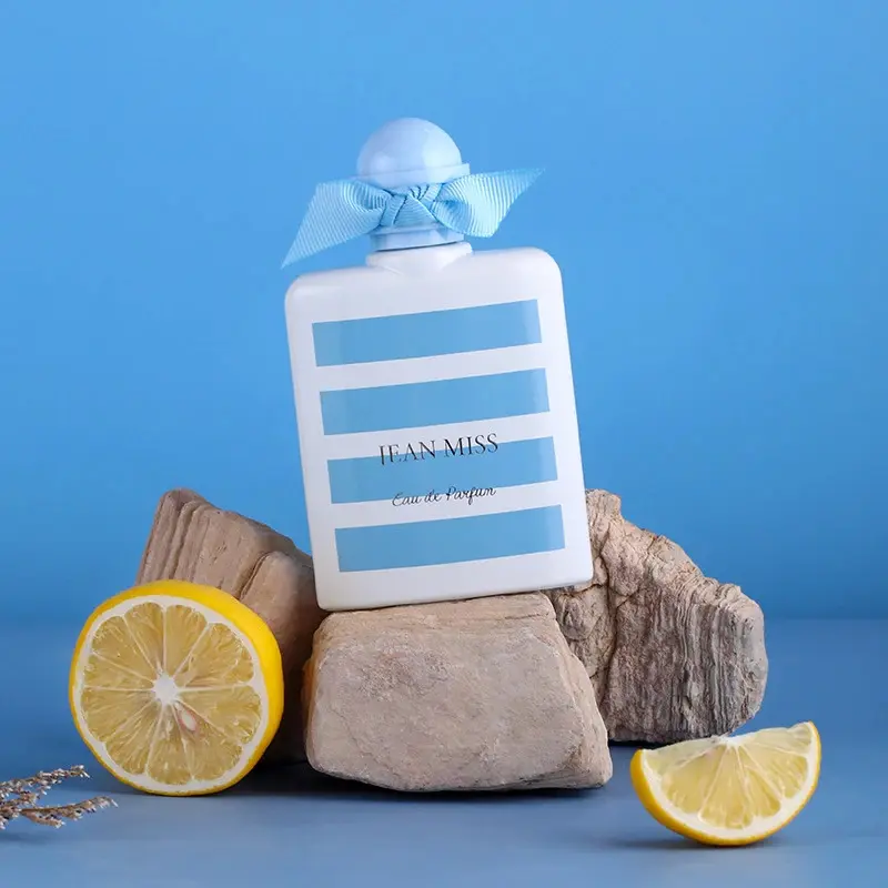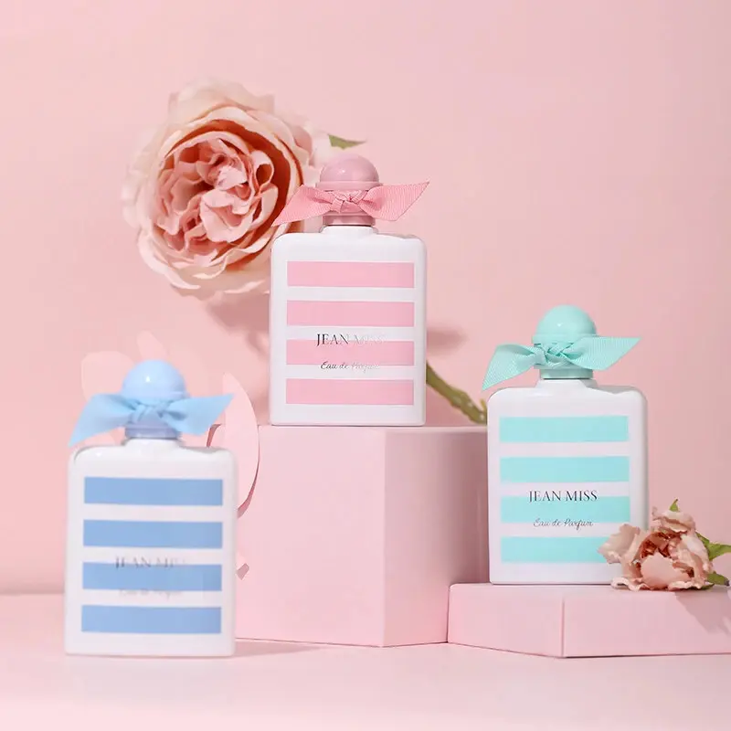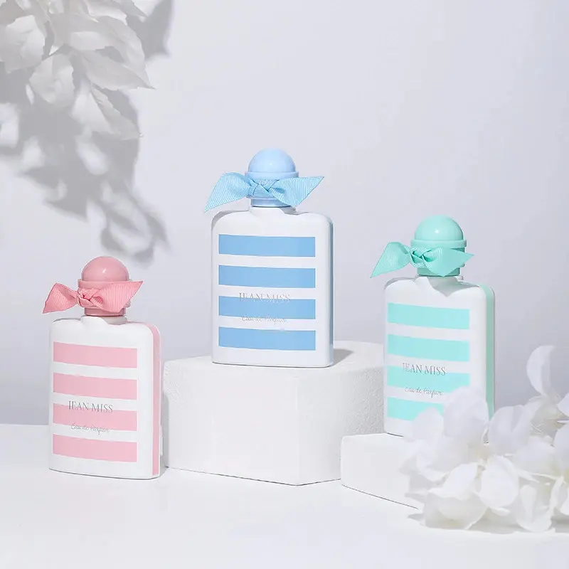 ·Elegant Striped Bottle Design This perfume features a minimalist white bottle with soft pastel striped accents and a delicate bow, combining a sweet, feminine look with a portable size that fits easily in a purse or travel bag, perfect for on-the-go freshness.