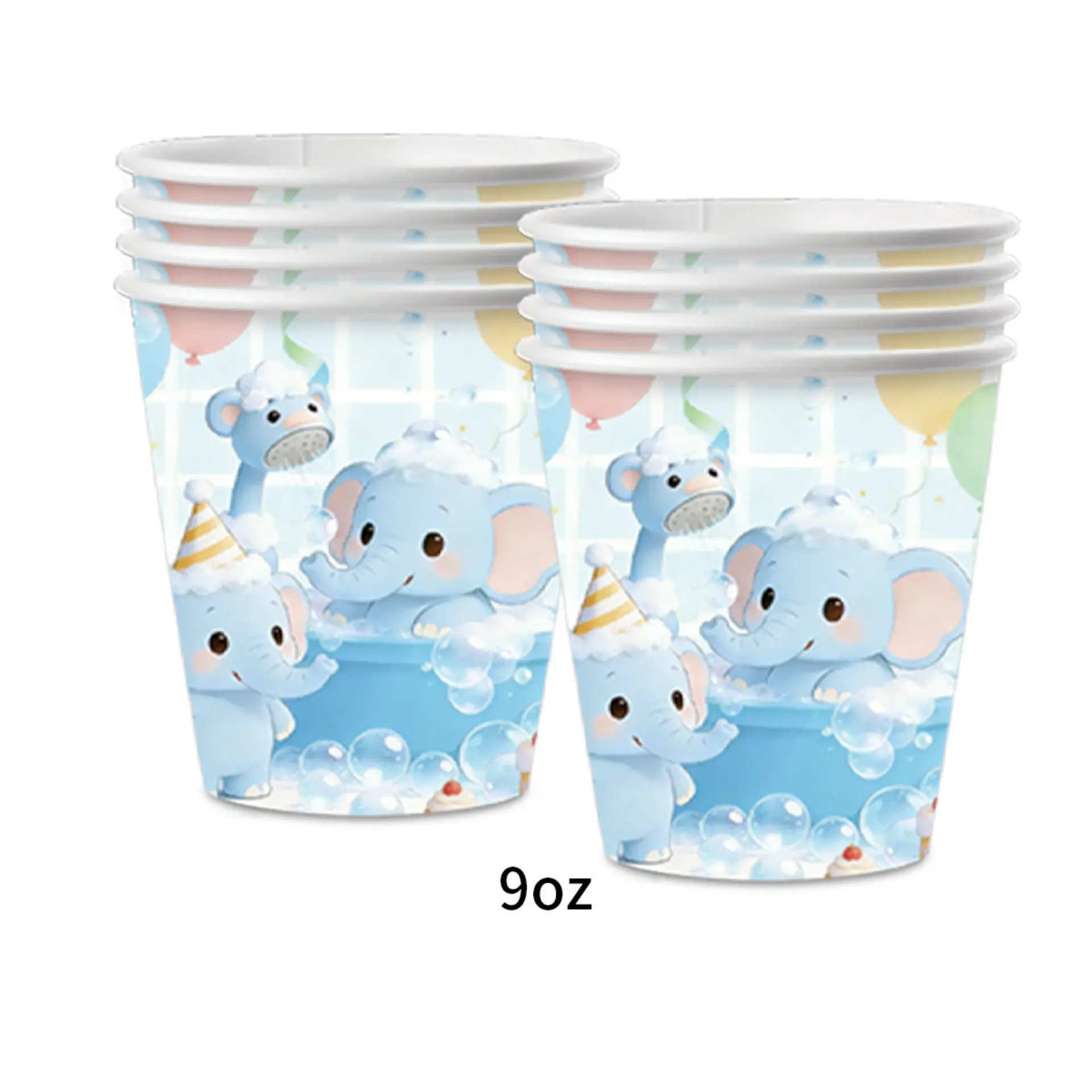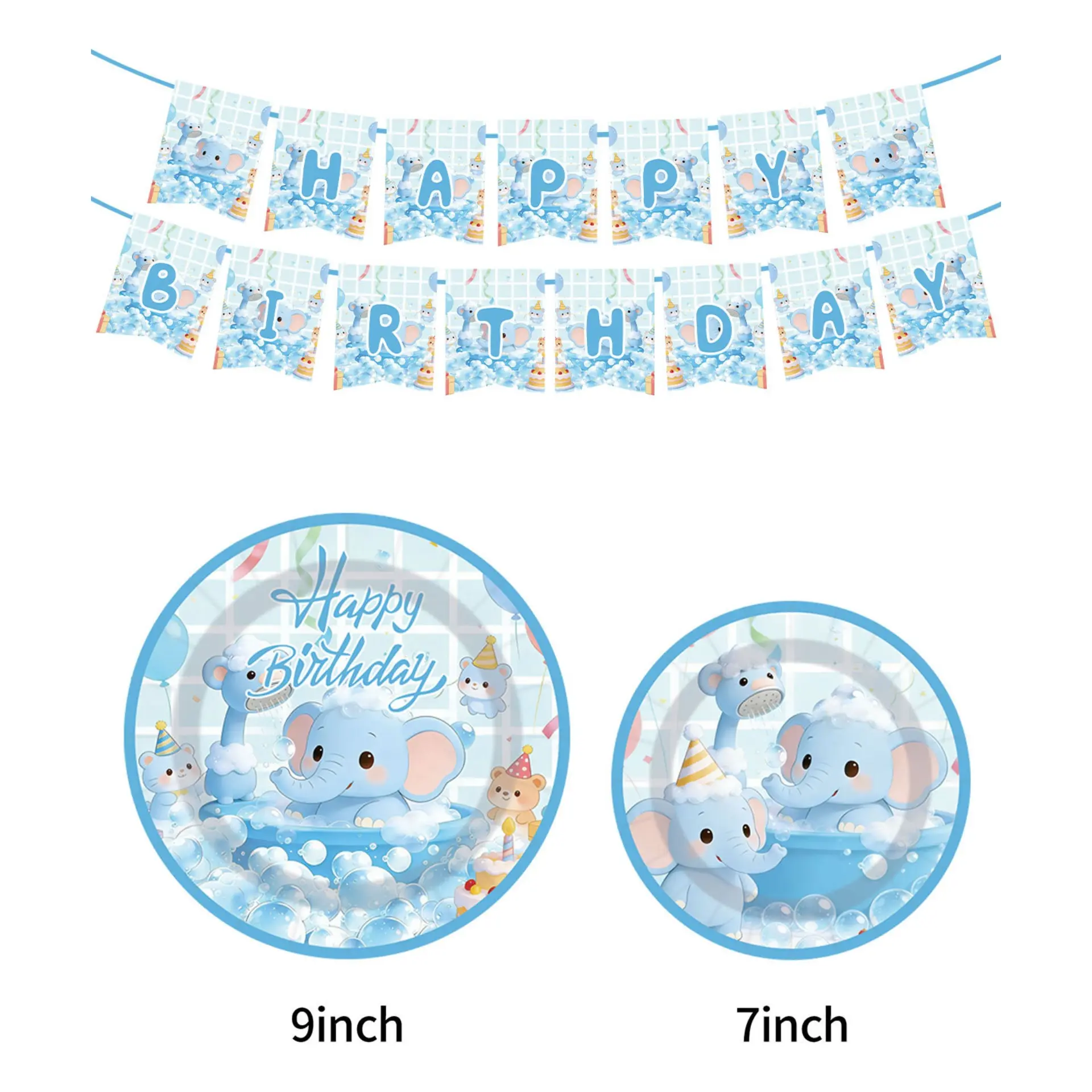 Cute elephant bath theme birthday party party arrangement set disposable paper plate paper cup paper towel tableware