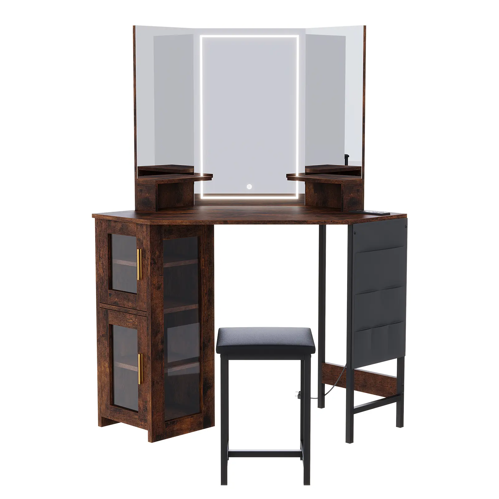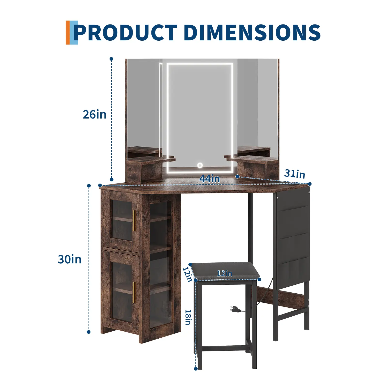 ·Space-Saving Corner Vanity Set: Fits perfectly in corners, includes a vanity desk (22"D x 44"W x 46"H) and a comfortable stool, ideal for bedrooms, apartments or dorms.