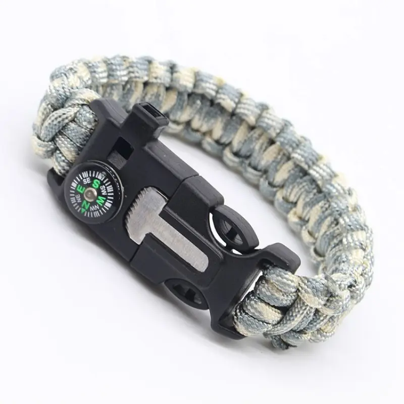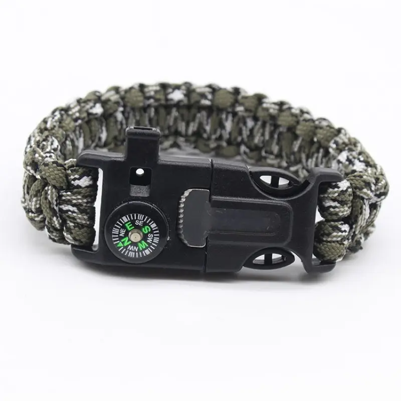 This bracelet is a survival tool with multiple functions. It includes a compass and a knife, essential for outdoor activities. The seven-core wristband is durable and reliable. Whether you're camping or exploring, this bracelet is your go-to accessory. Stay prepared with this multifunctional paracord bracelet.