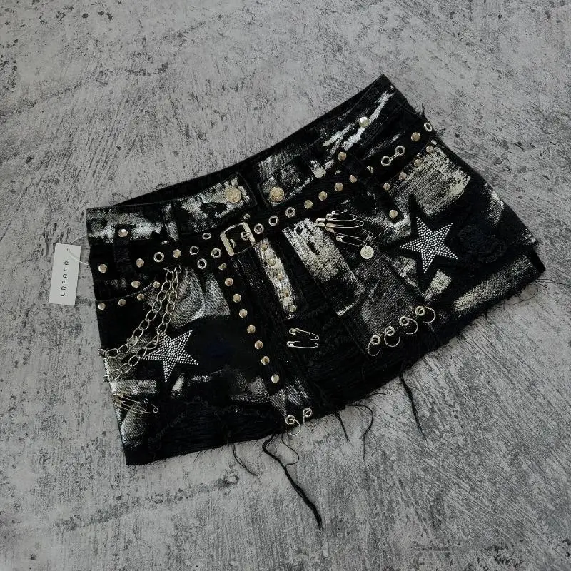 Y2k Streetwear Short Skirt Women Retro Washed Rhinestone Sequin Loose Denim Shorts Gothic Harajuku High Waist Slim Mini Skirt Size Table S Waist:66cm Hips:88cm Length:31cm M Waist:70cm Hips:92cm Length:31cm L Waist:74cm Hips:96cm Length:32cm XL Waist:78cm Hips:100cm Length:32cm XXL Waist:82cm Hips:104cm Length:33cm