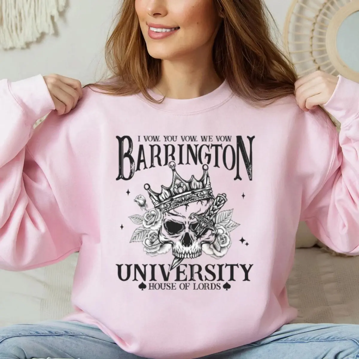 Barrington university skull crest t shirt, the lords series tee sweatshirt, dark romance gift for book lovers hoodie, unisex sweater pullover tee