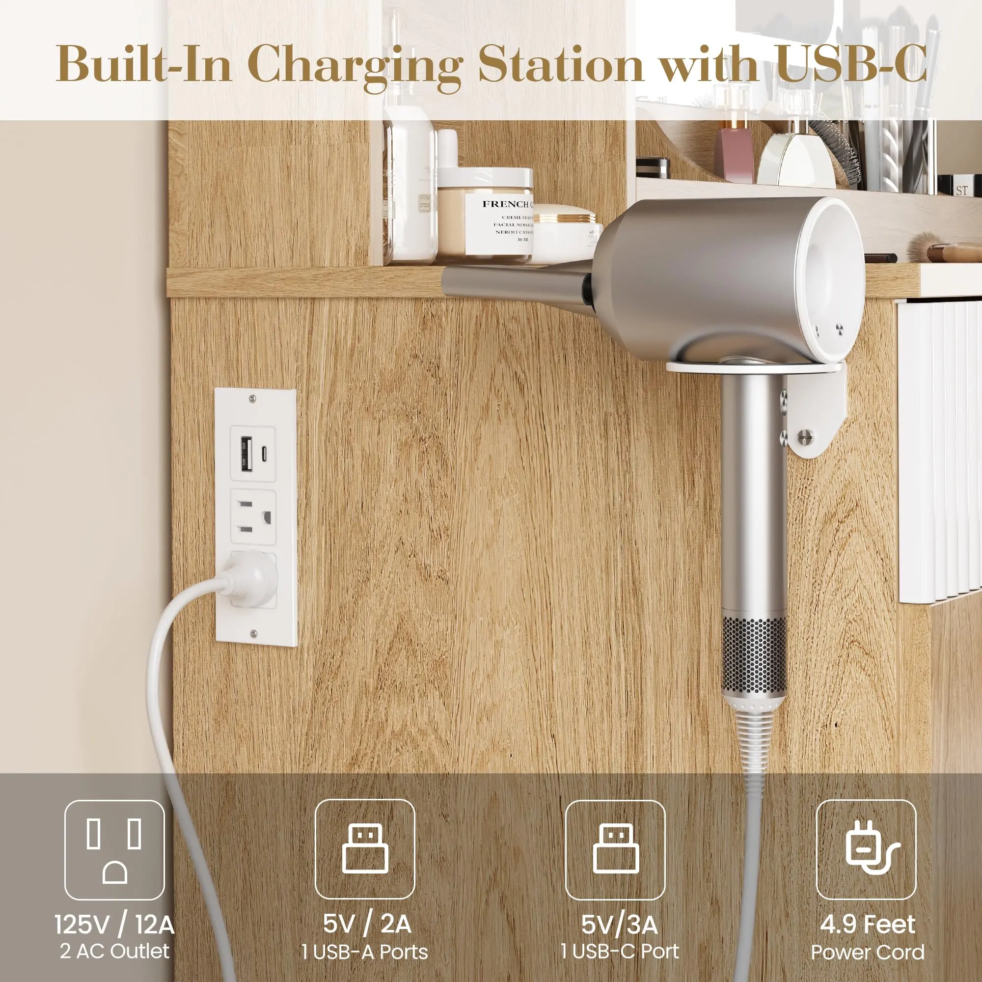 Built-in Charging Station for a Tangle-Free Beauty Hub Solve cord clutter with the integrated power strip. Its robust frame houses AC outlets and USB ports, allowing you to charge your phone and power styling tools simultaneously for a seamless, organized beauty routine.