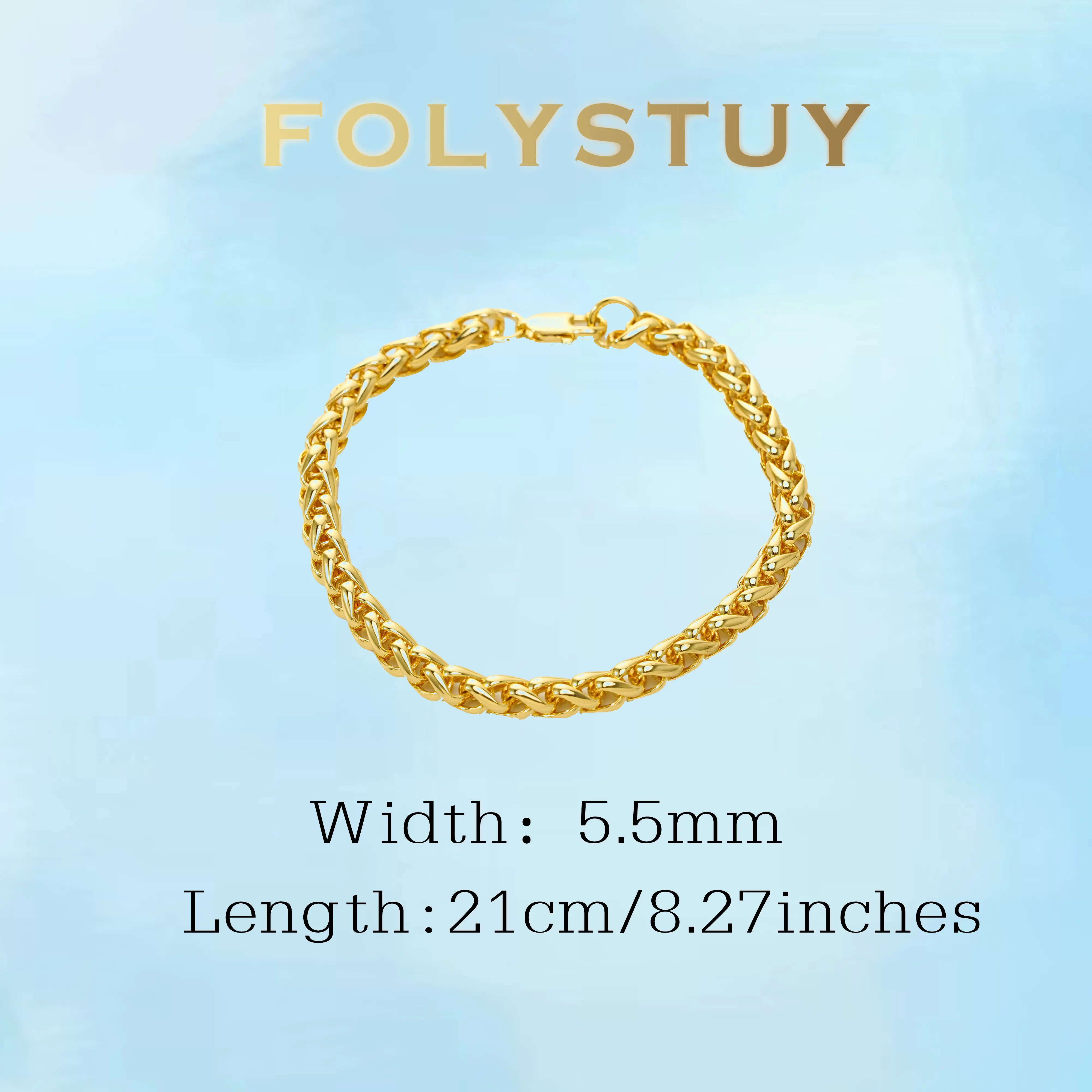 Holylegend 14K Gold-Plated Rope, Figaro, Cuban Concave, Franco, Byzantine Bracelet, Twisted cable bracelet,Elegant jewelry bracelet, 8" Length, 6 mm/8 mm/10 mm Width,Diamond Cut