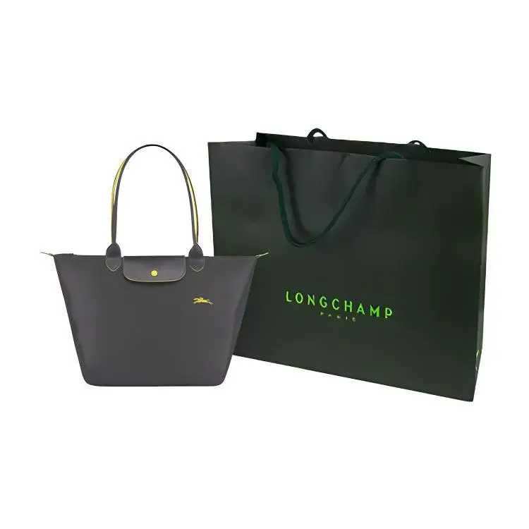 Materials: Exterior: Premium coated nylon with leather-trimmed base and handles (genuine cowhide). Lining: Durable 100% polyester with LONGCHAMP signature logo print.