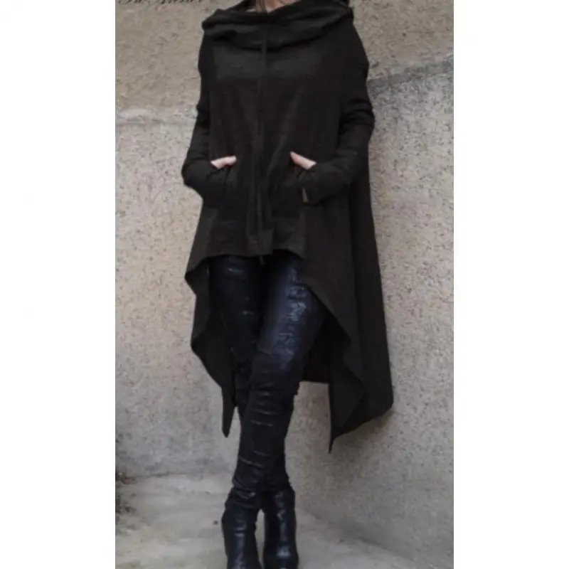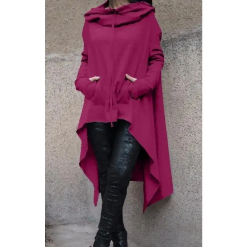 5. New solid-color hooded irregular loose pocket sweatshirt for autumn and winter