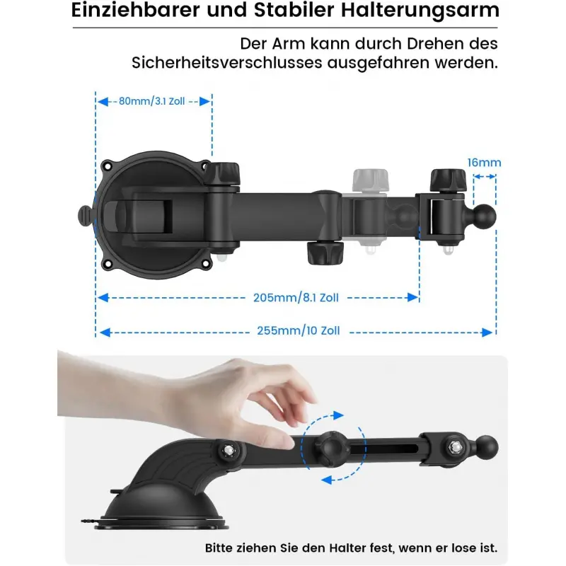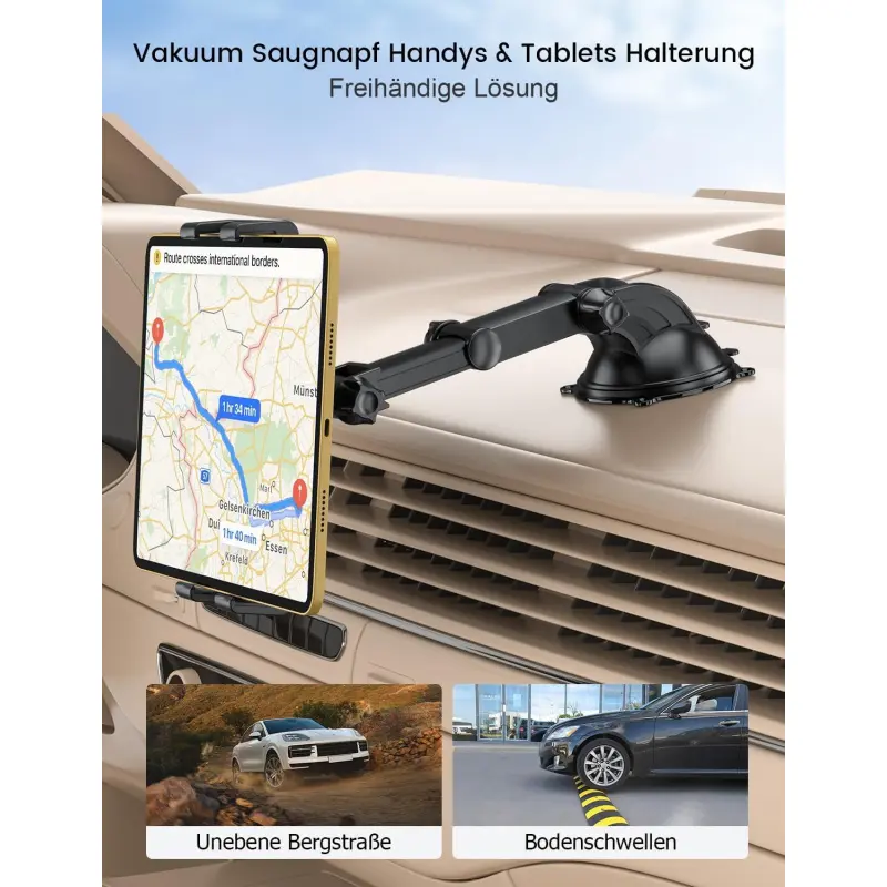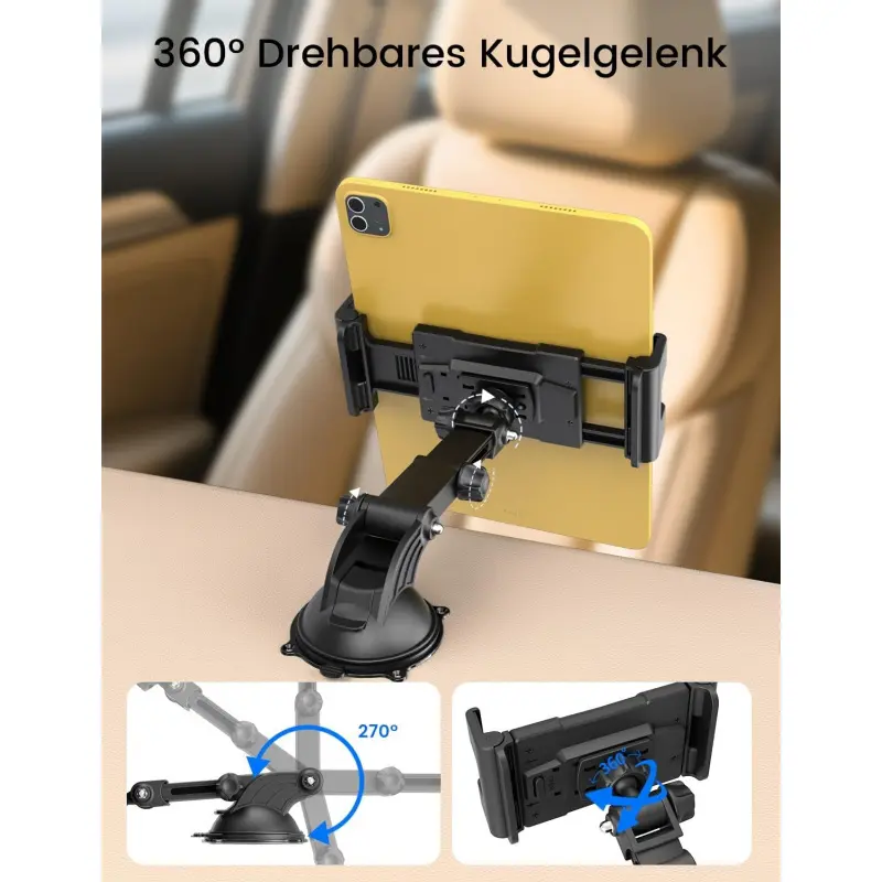 This iPad car mount features a telescopic arm (up to 18 cm) and a 360 ° rotatable ball head, allowing you to easily position your iPad at the optimal viewing angle.
