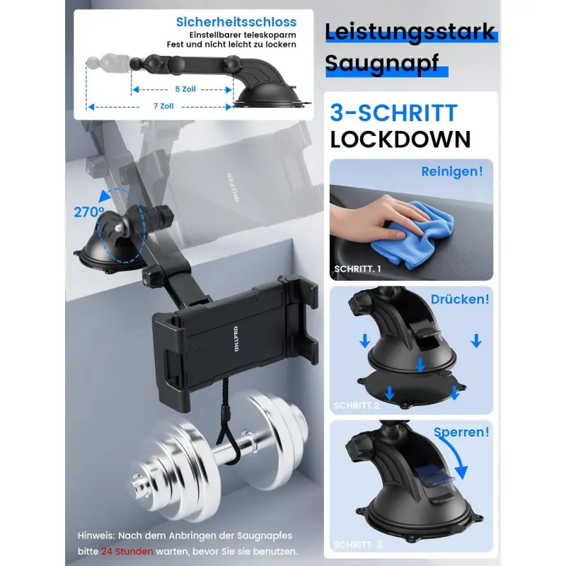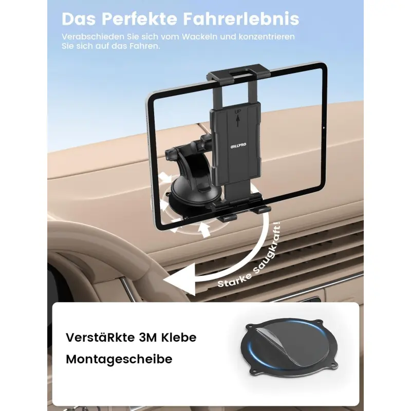 OHLPRO Tablet Holder Car, 360° Rotation Tablet Mounts, 18 cm, Extendable Arm + Washable Suction Cup, iPad Car Holder, Universal Windscreen & Dashboard for 5-13 Inch iPad, Sumsung, Smartphone