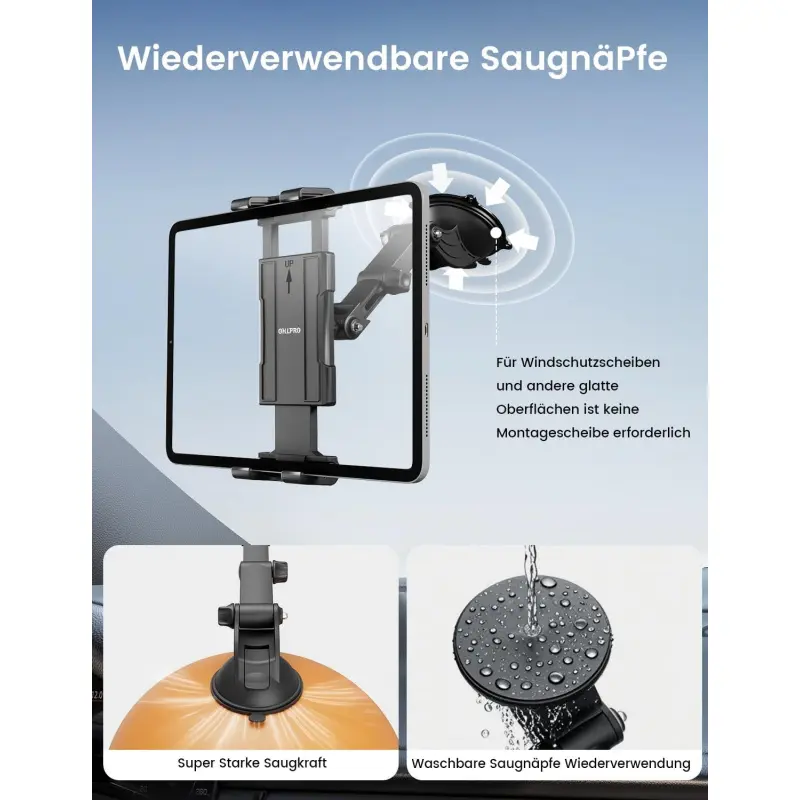 The OHLPRO Reusable Powerful Suction Cup Tablet Holder features improved TPU suction cups and a unique push-to-unlock design.If it gets dirty, simply rinse it with water to restore its original condition and durability.