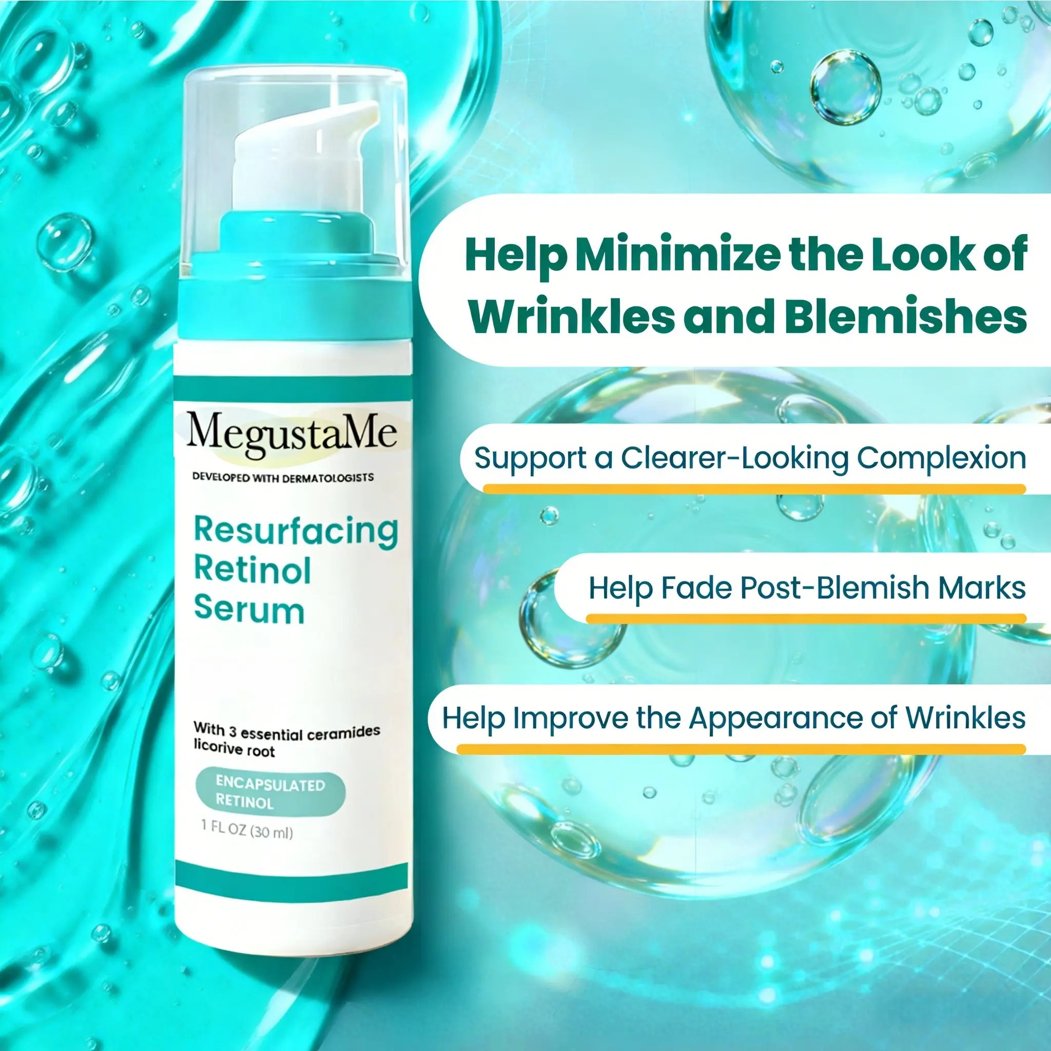 ·-Encapsulated retinol can fade the marks of acne, minimize pores, and reduce irritation to the greatest extent possible.