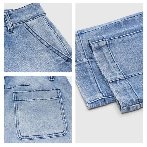 5. Flamingals Casual Mid Rise Straight Leg Crop Jeans Stretchy Flattering BBL Fit Contrast Stitching