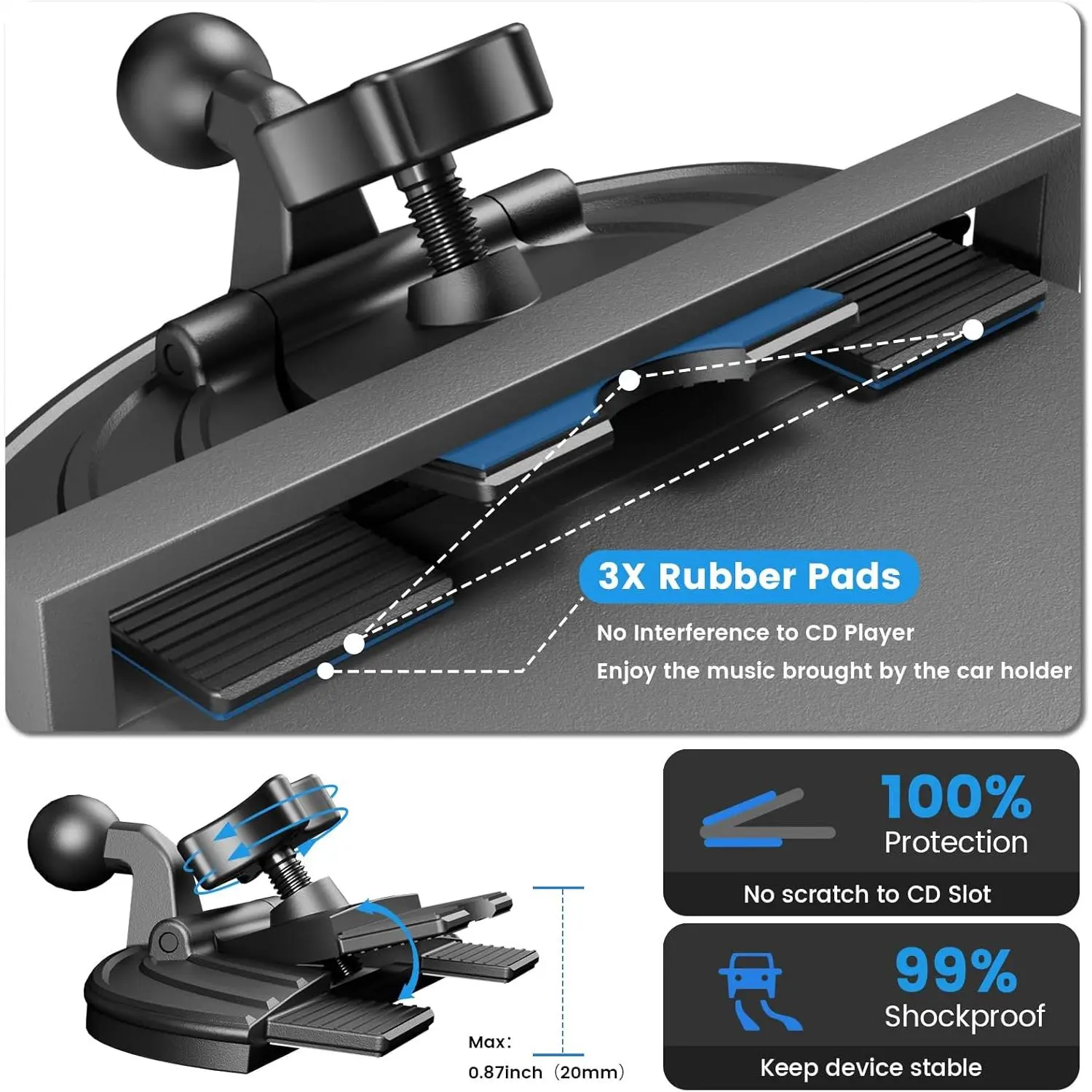 OHLPRO CD slot tablet holder for cars, universal 7-inch iPad car mount, adjustable CD player tablet holder for iPad mini, Air, Pro 11, Galaxy Tab, ideal for navigation and entertainment