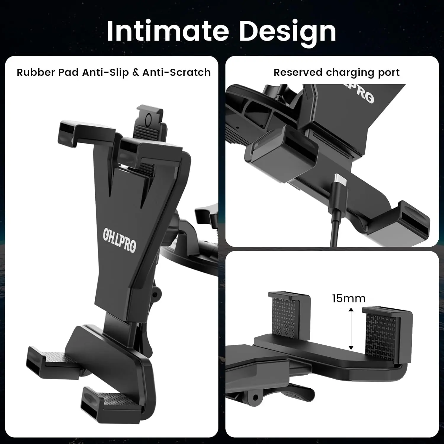 The OHLPRO Universal Car Mount is a versatile 2-in-1 tablet holder designed for secure and convenient use in vehicles