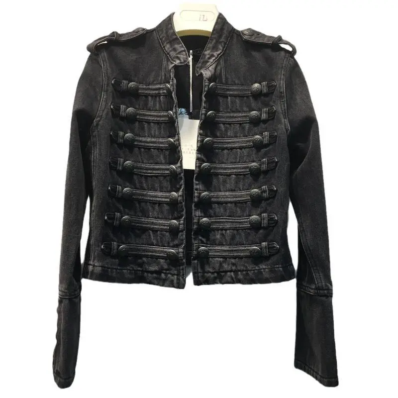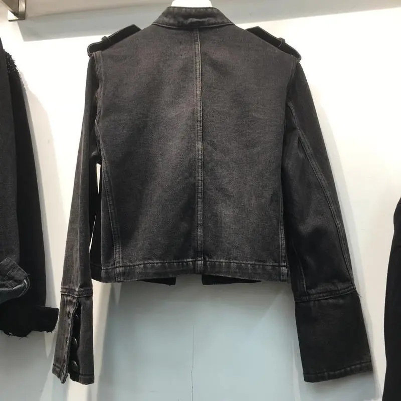 Vintage Military Style Handsome Stand Collar Denim Jacket Women Double-Breasted Wild Slim Fit Short Denim Jacket Women's Coat Casual