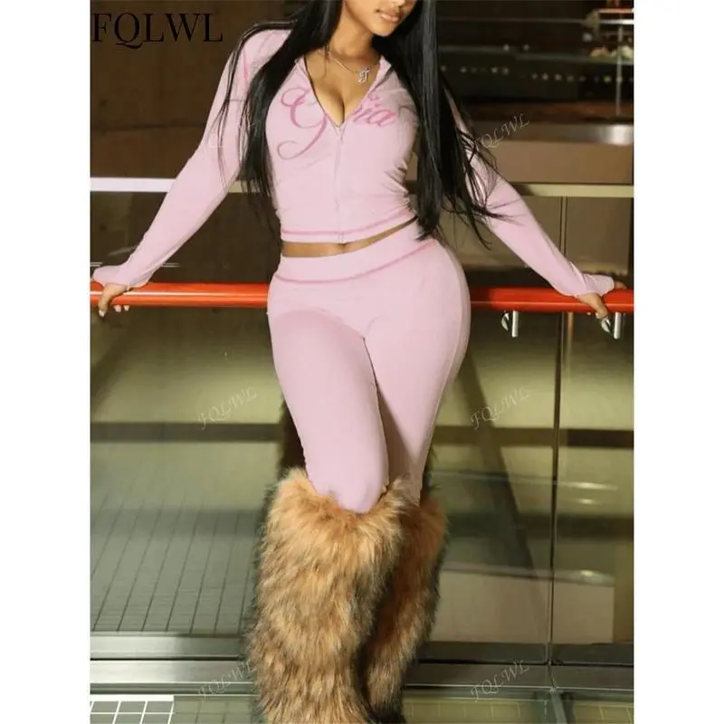 Fall Street Lounge Sets For Women Graphic Print Zip Up Hoodie Pants Outfits Workout Long Sleeve Rave Two Pieces Set Women