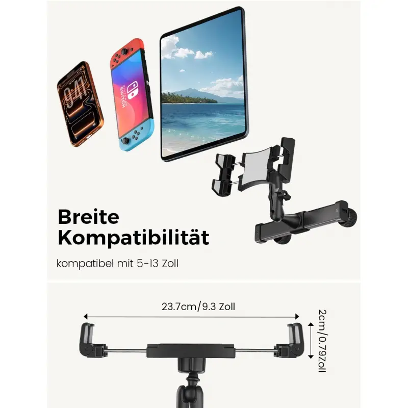OHLPRO Tablet Holder Car Headrest [Ball Bearing Arm + Metal Folding Clamp] Universal Car Tablet Holders Travel Accessories Children Compatible with All 5-13 Inch iPad Mobile Phones Switch Sumsung