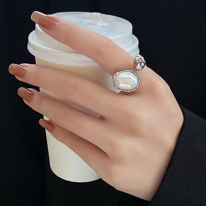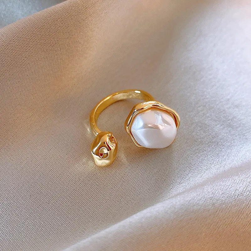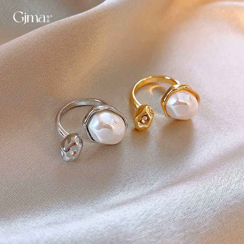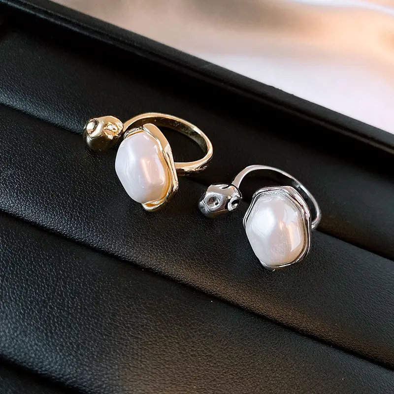 Irregular oval pearl open ring, European and American design, fashionable and creative, gold and silver color, popular online style women's ring