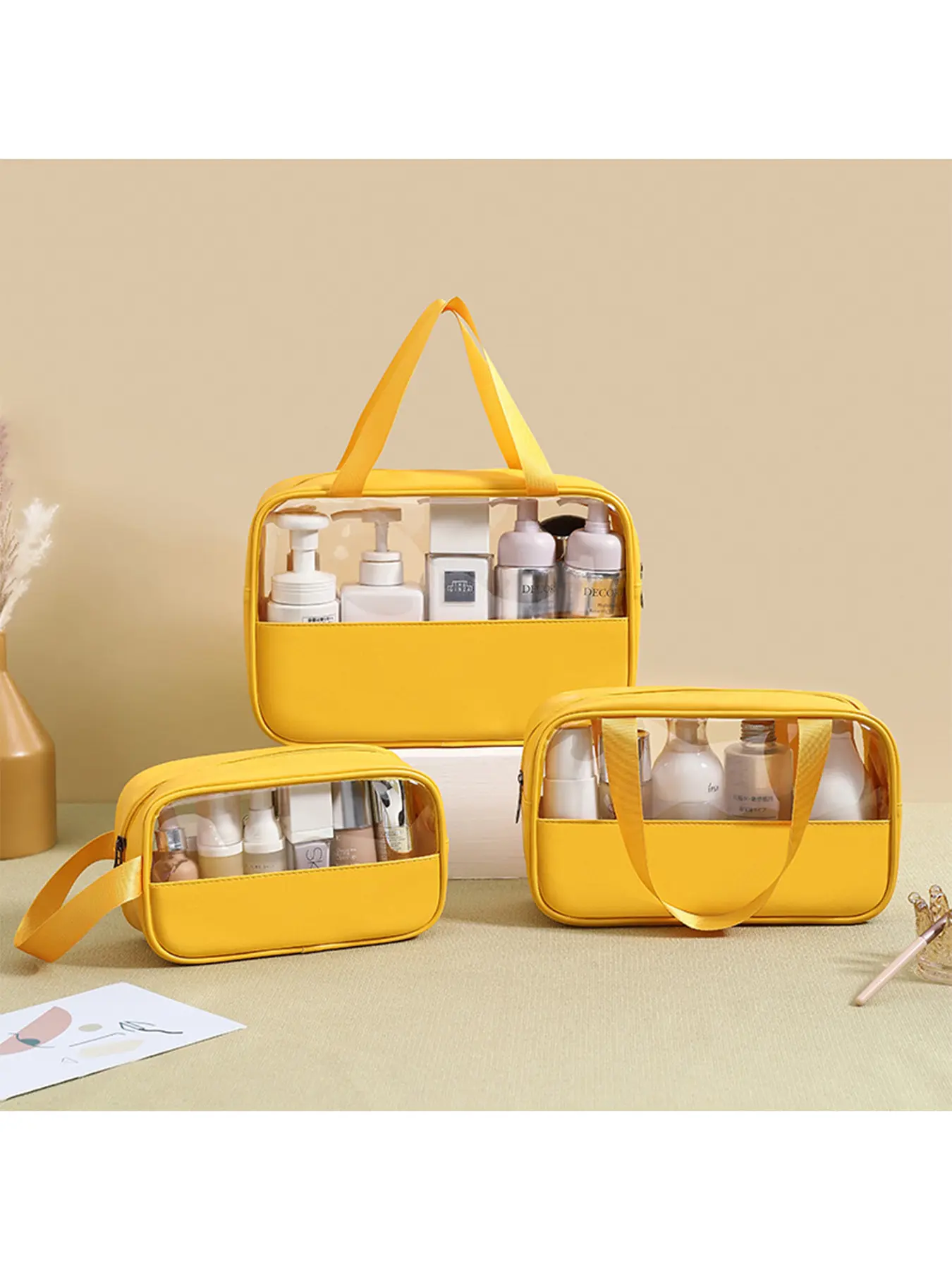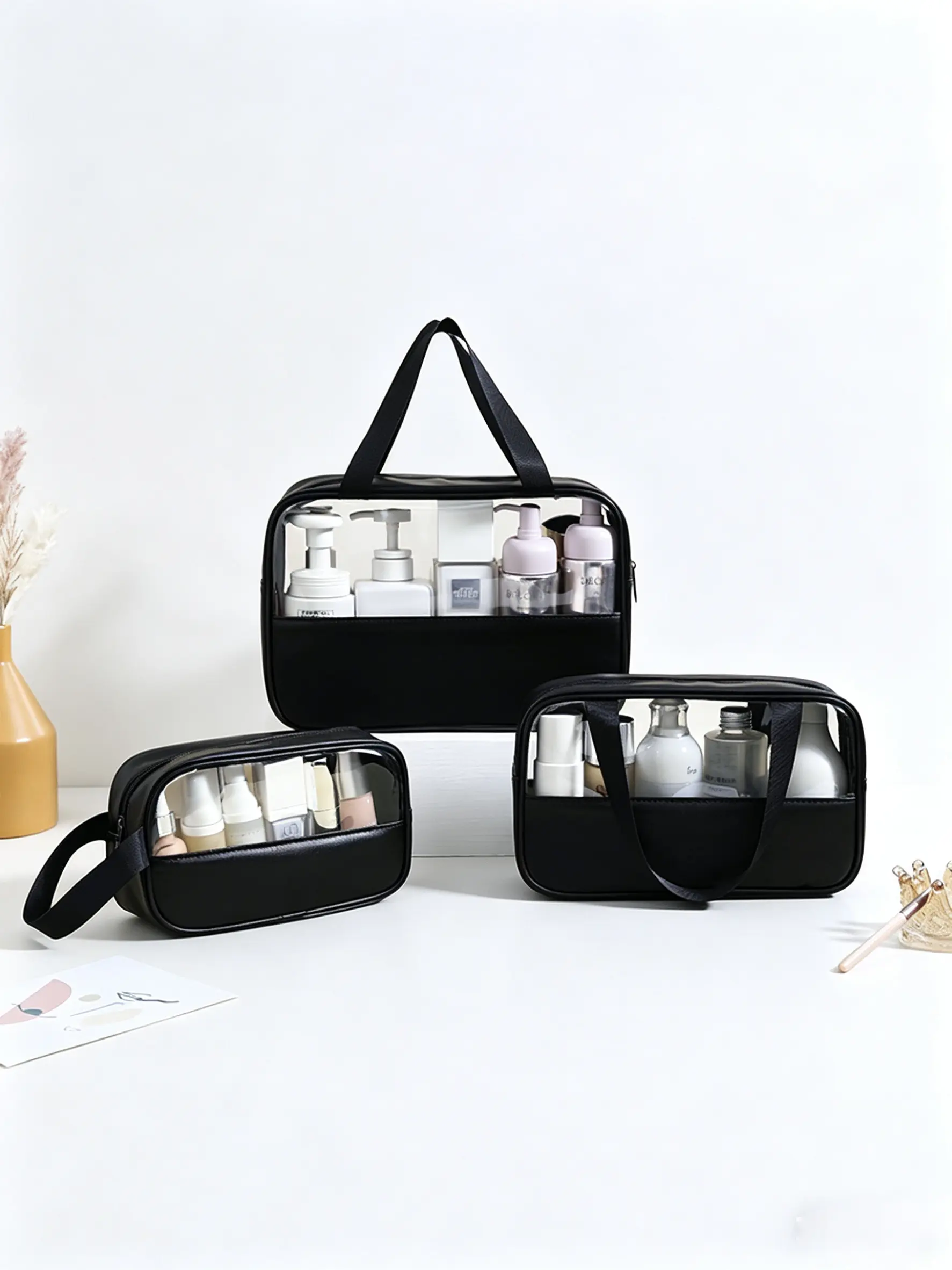 Travel Makeup Bag Set, Minimalist Zipper Cosmetic Organizer, PVC Transparent Waterproof Washbag, Large Capacity Portable Makeup Case